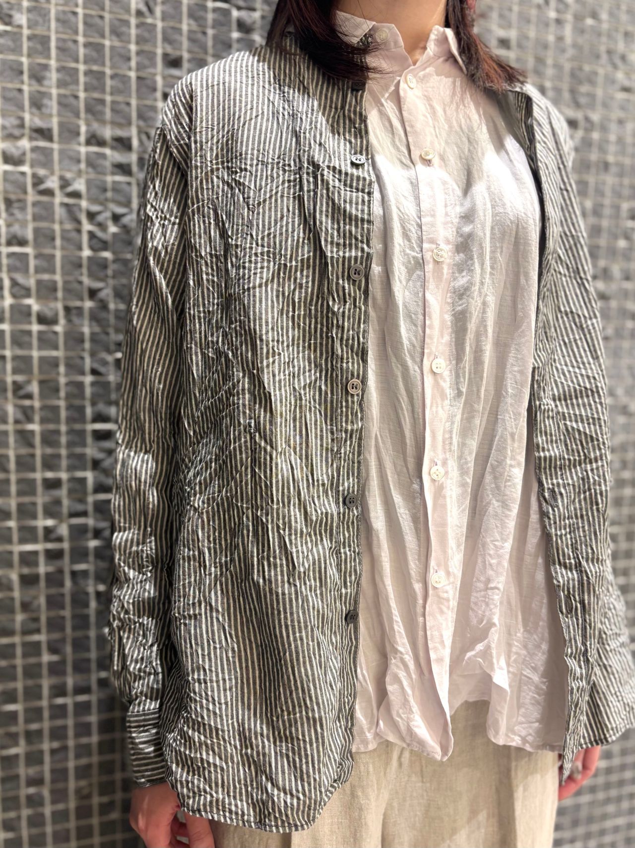 綿麻ストライプ ブラウス
