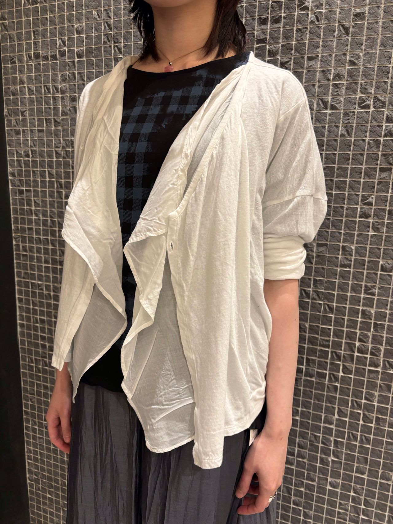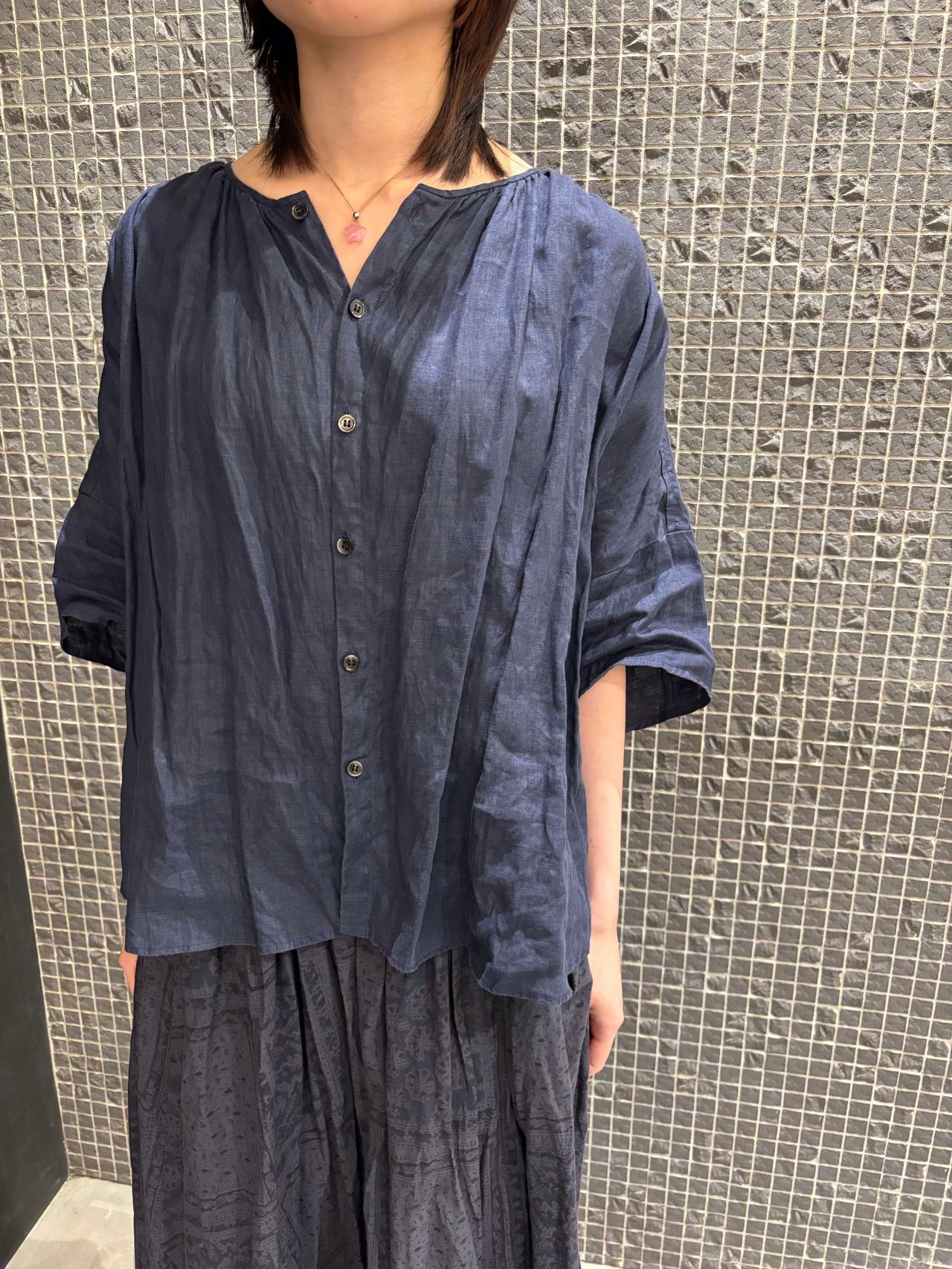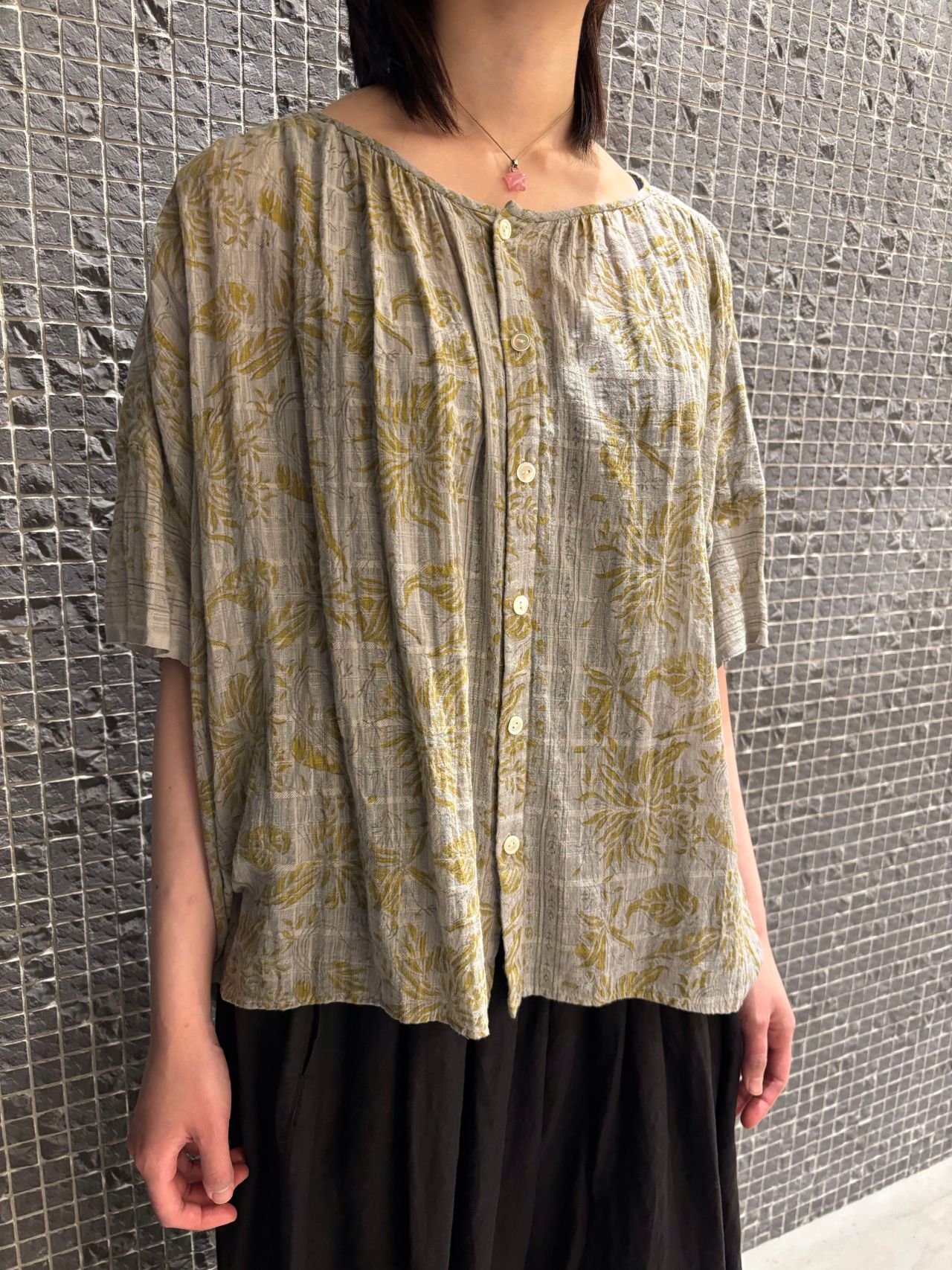 blouse no.6519 col.gray,green size.36 ¥29,700 (6月上旬入荷予定)