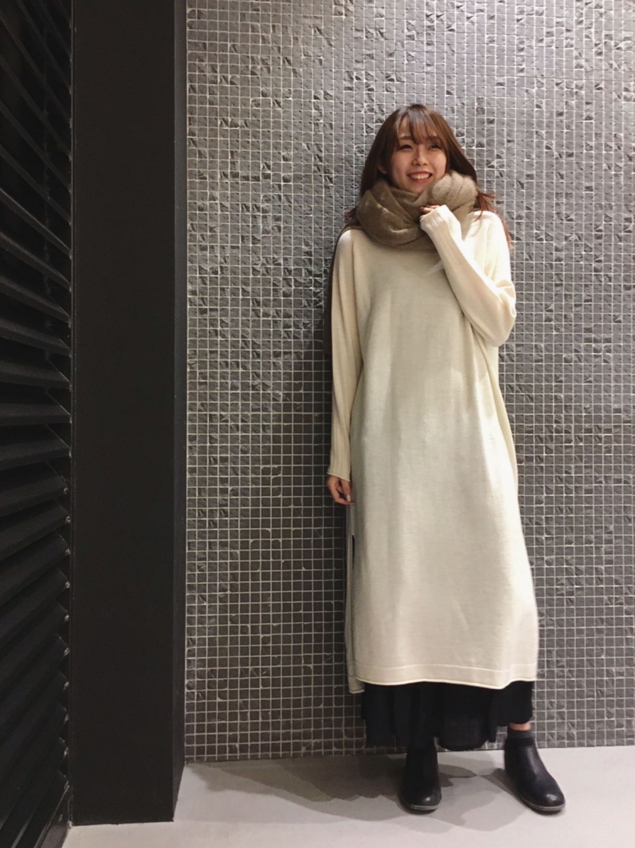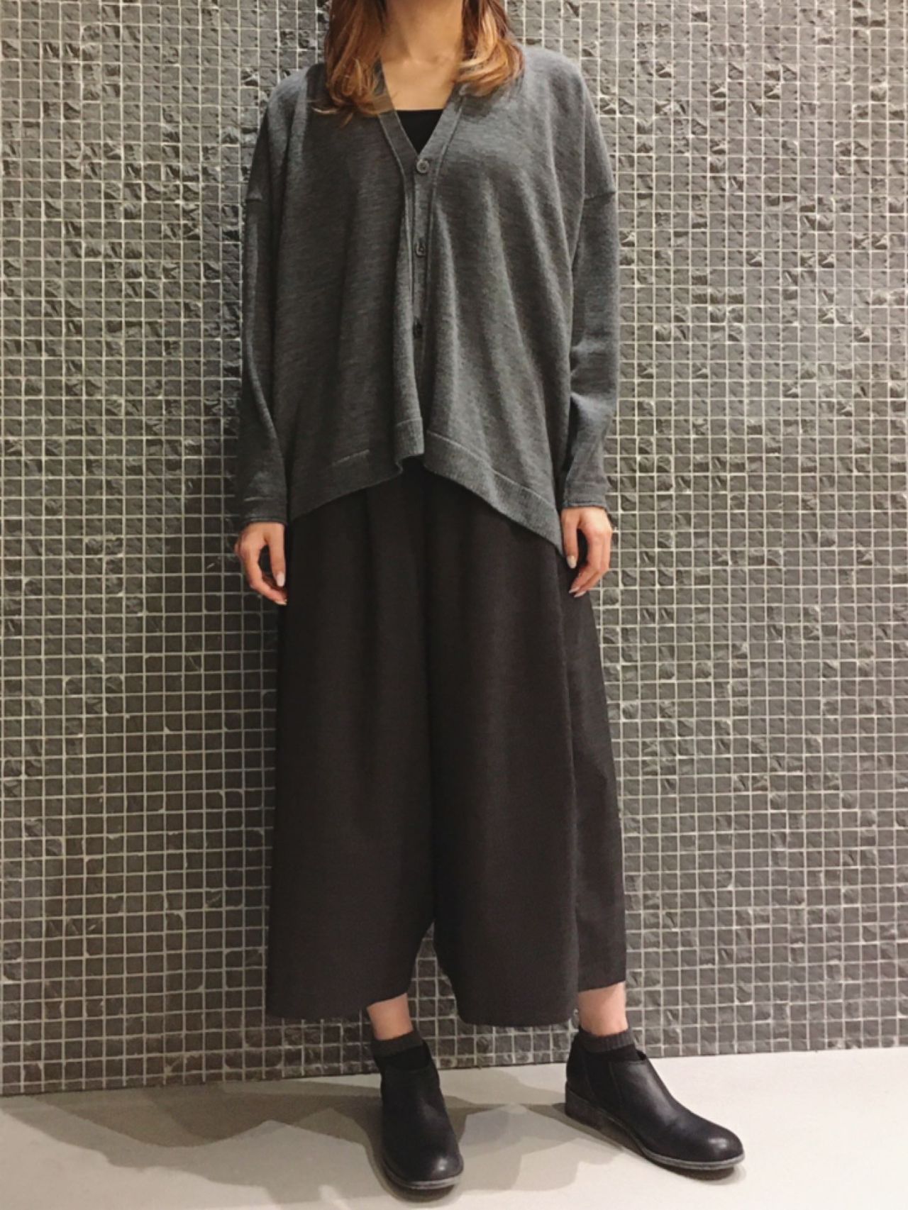 カーディガンは大きめのシルエットになっており、今回は前をとめてプルオーバーとして着てみました。