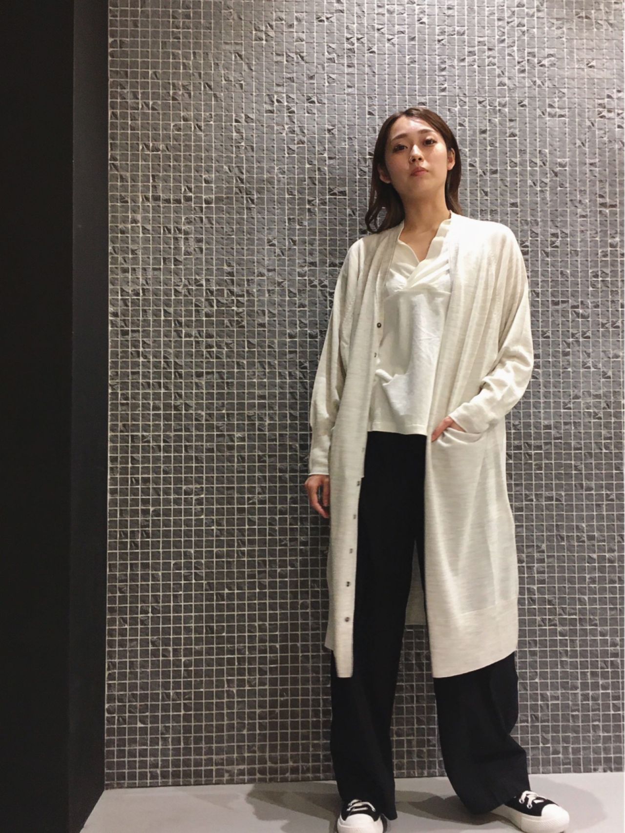 no.2107 col.グレー(着用)/キャメル(完売)/クロ(完売) ¥29,700