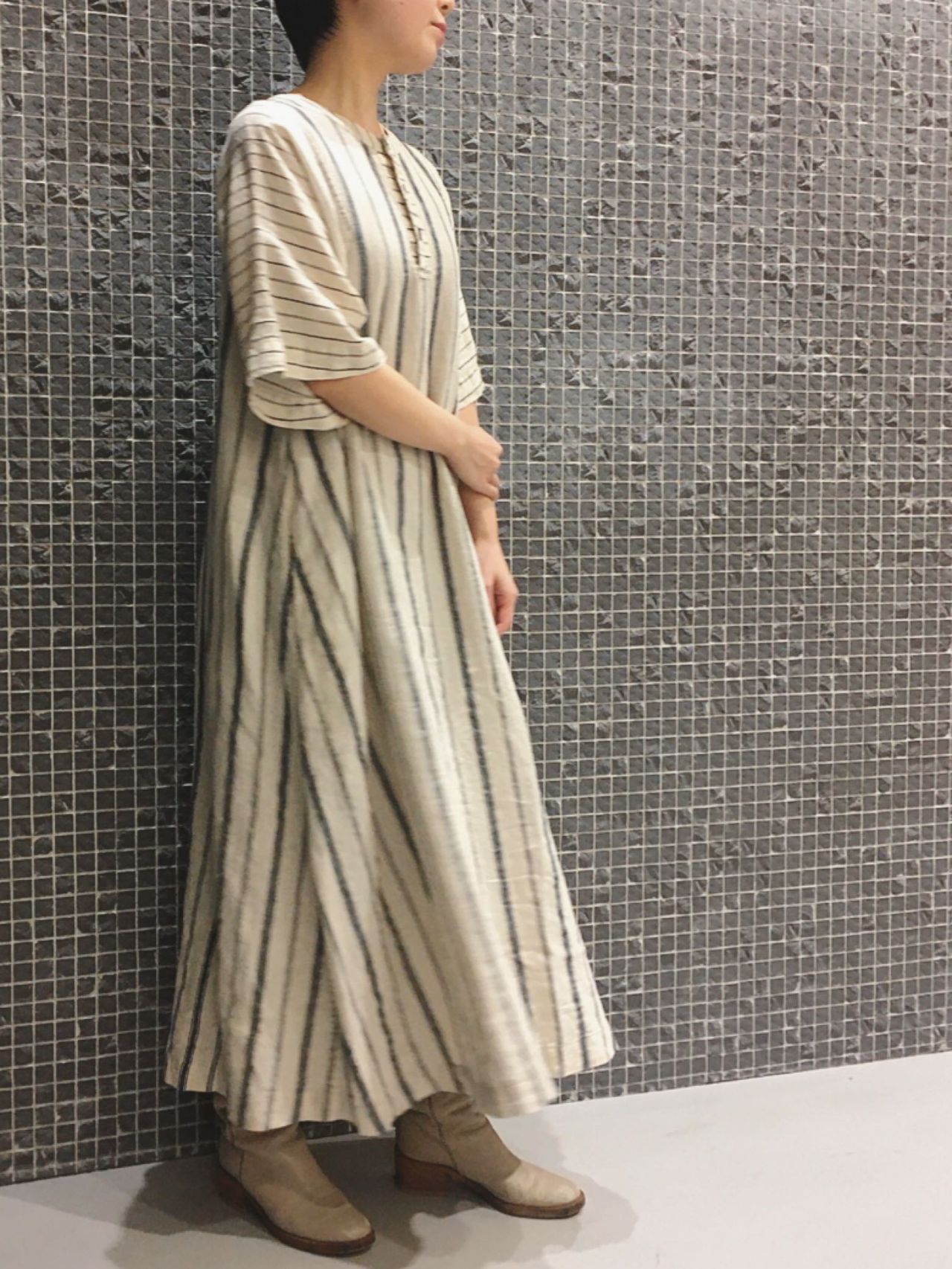 アイリッシュリネンコートno.9004 col.グレー(36サイズ着用)/ホワイト/ネイビー ¥53,900