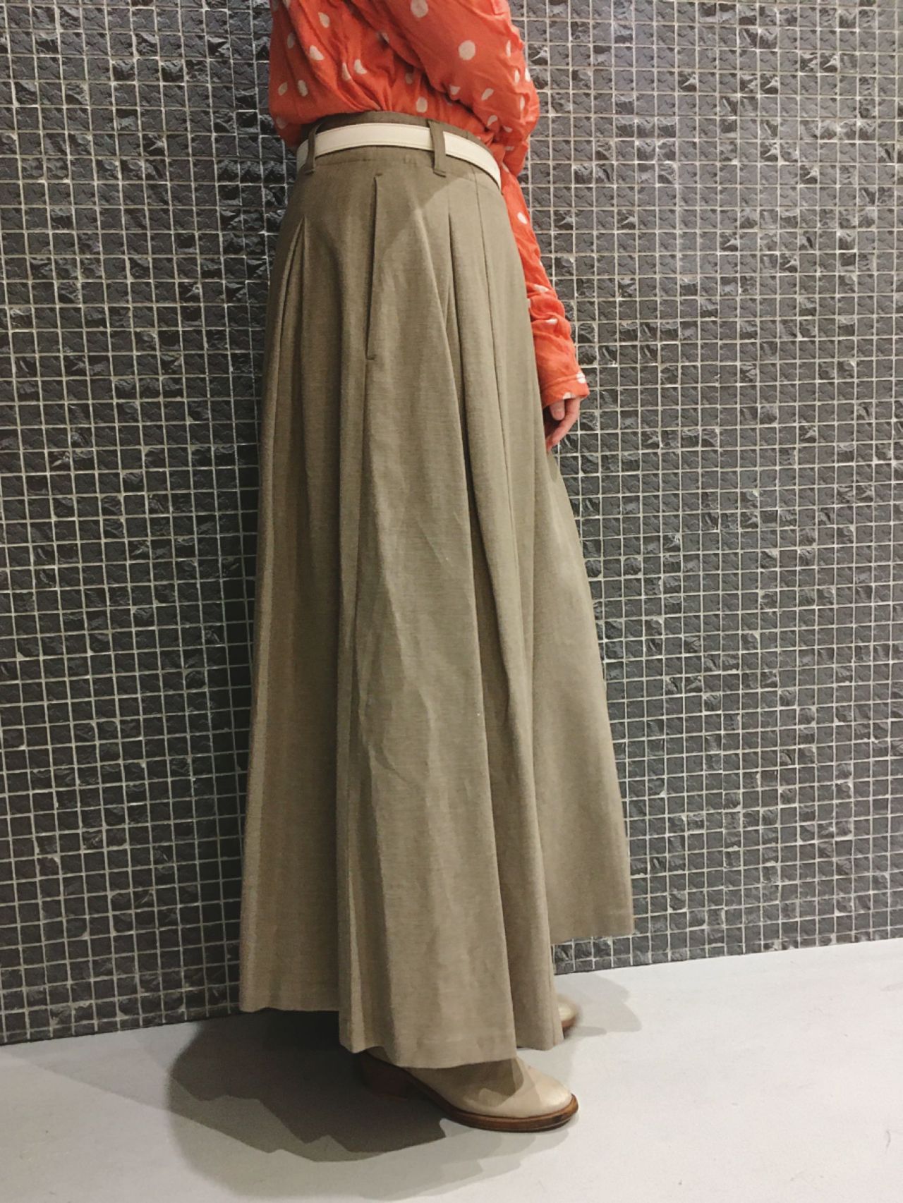 リネンストレッチスカートno.7023 col.ベージュ(36サイズ着用)/チャコール ¥26,400