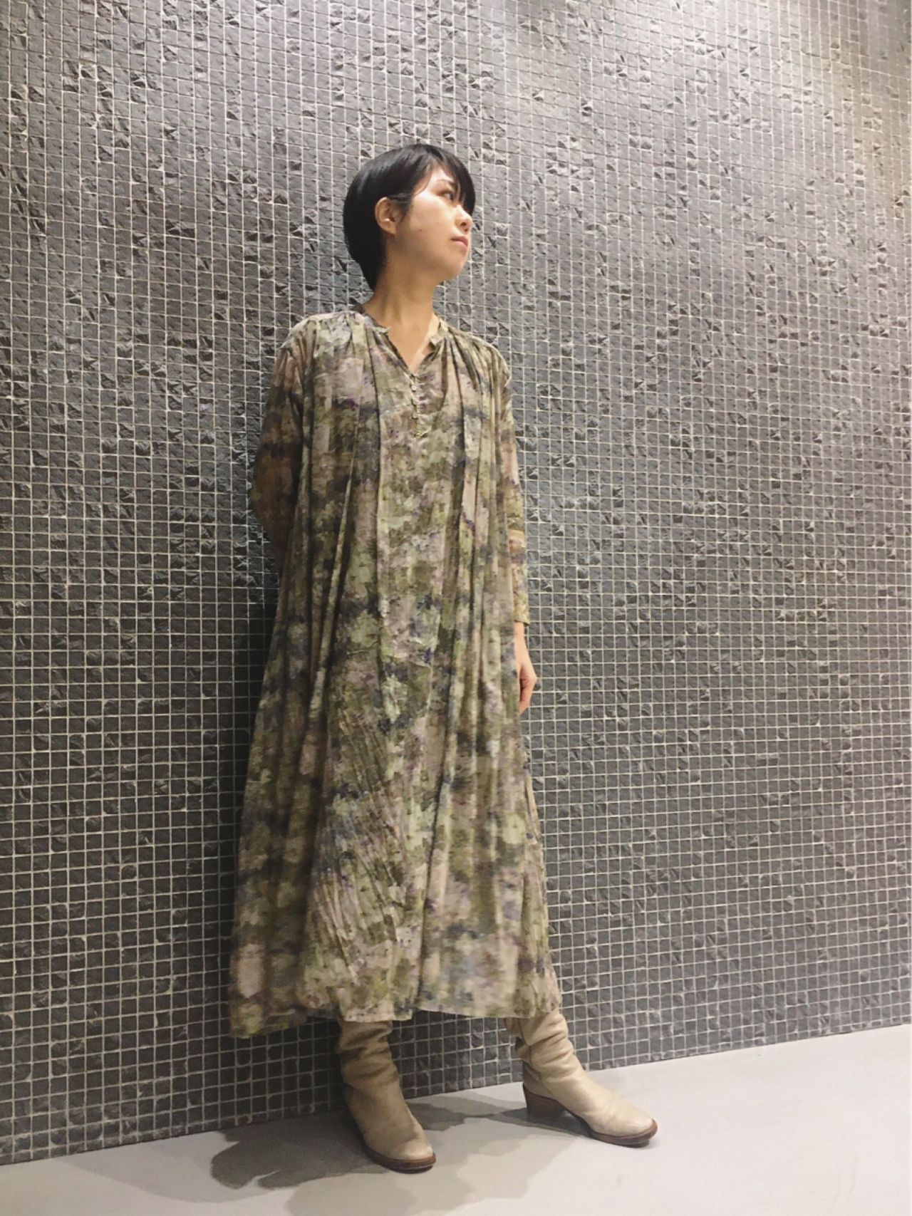 ブラッシュタッチプリントワンピース