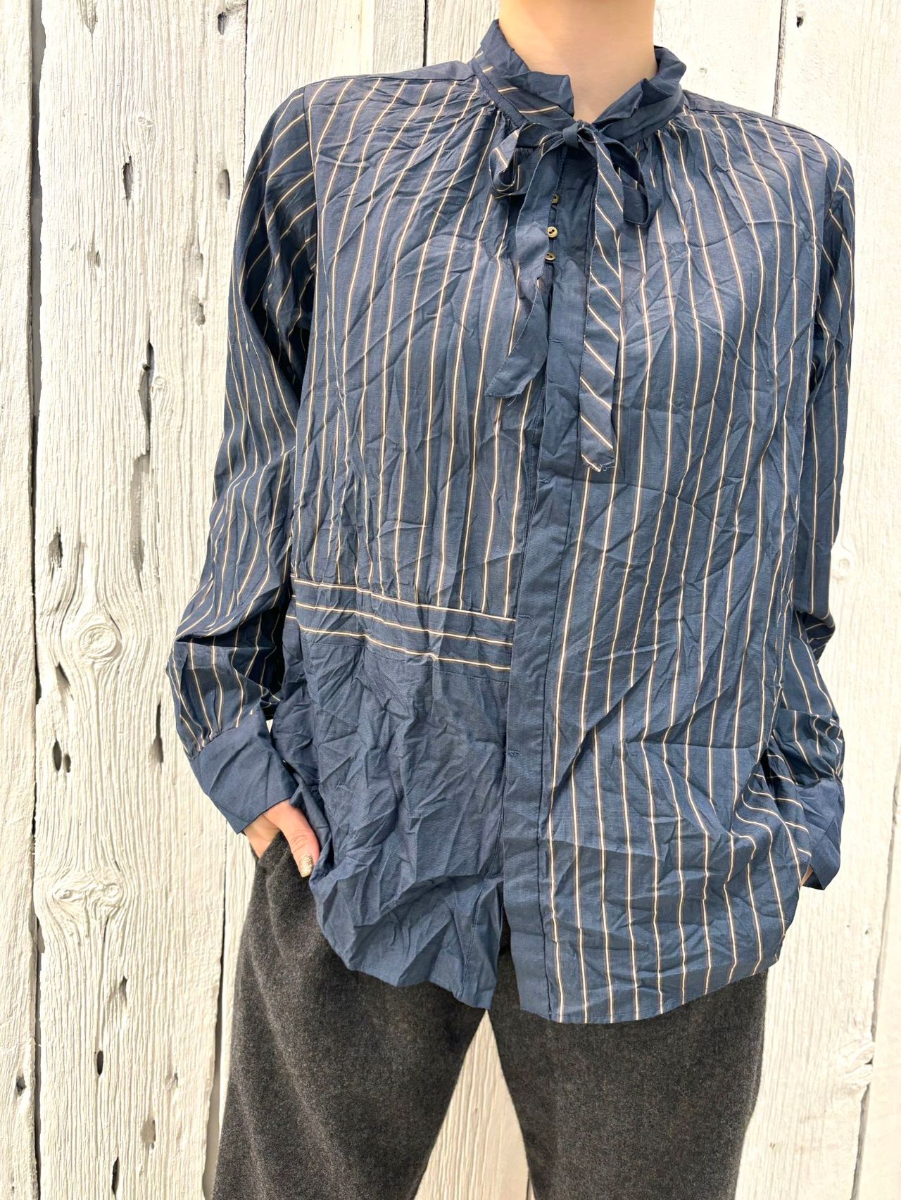 コンパクトコットンストライプシャツ (11.13入荷予定)