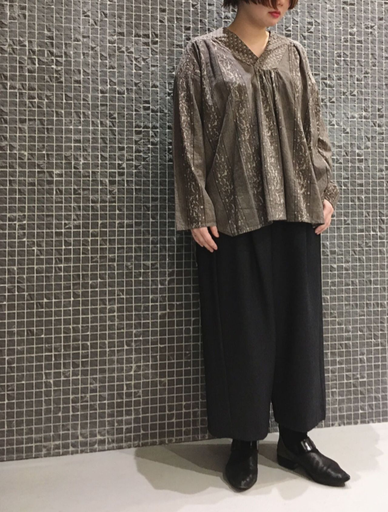 ヘリンボンサルエルパンツ
