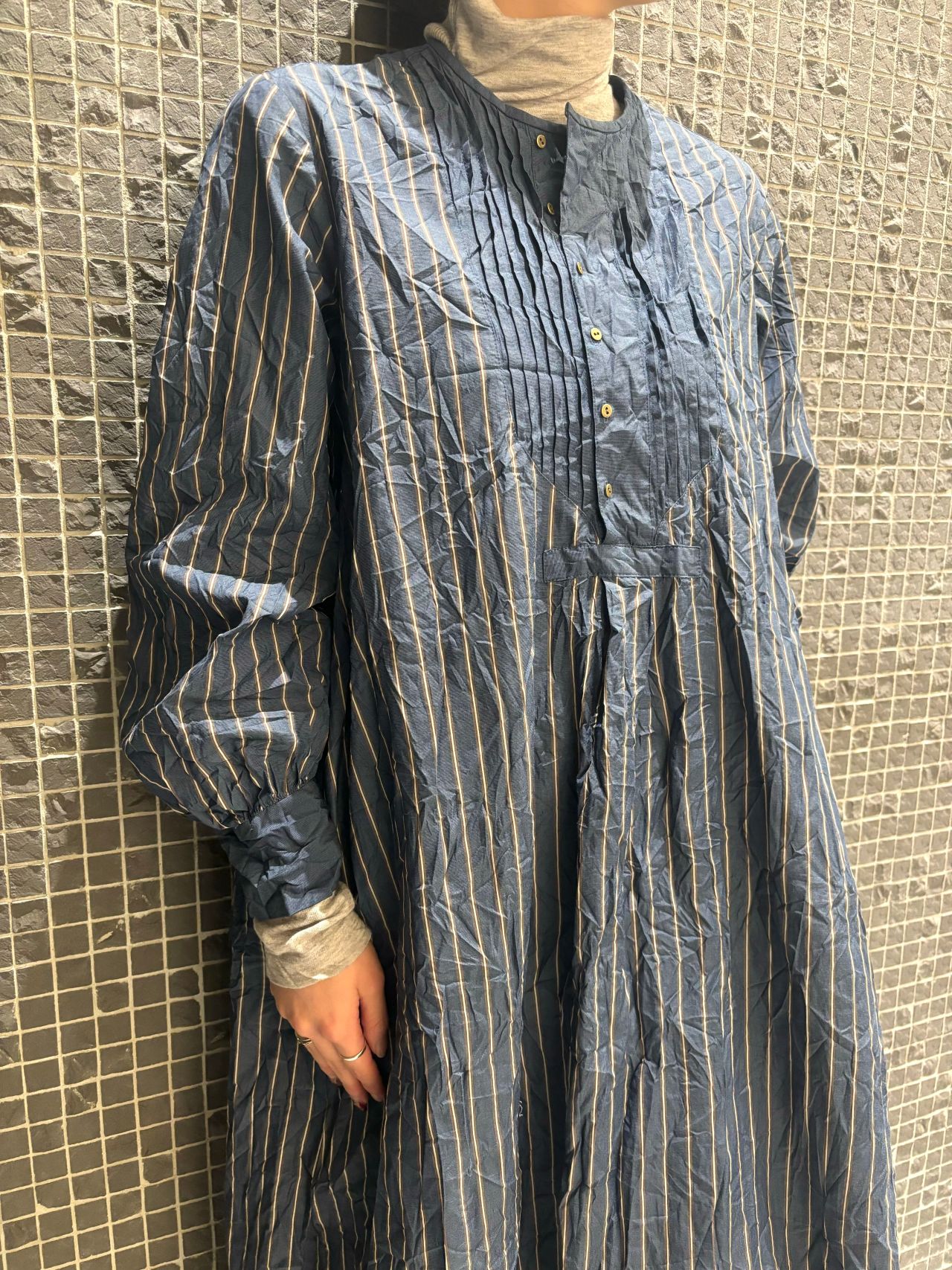 コンパクトコットンストライプワンピース