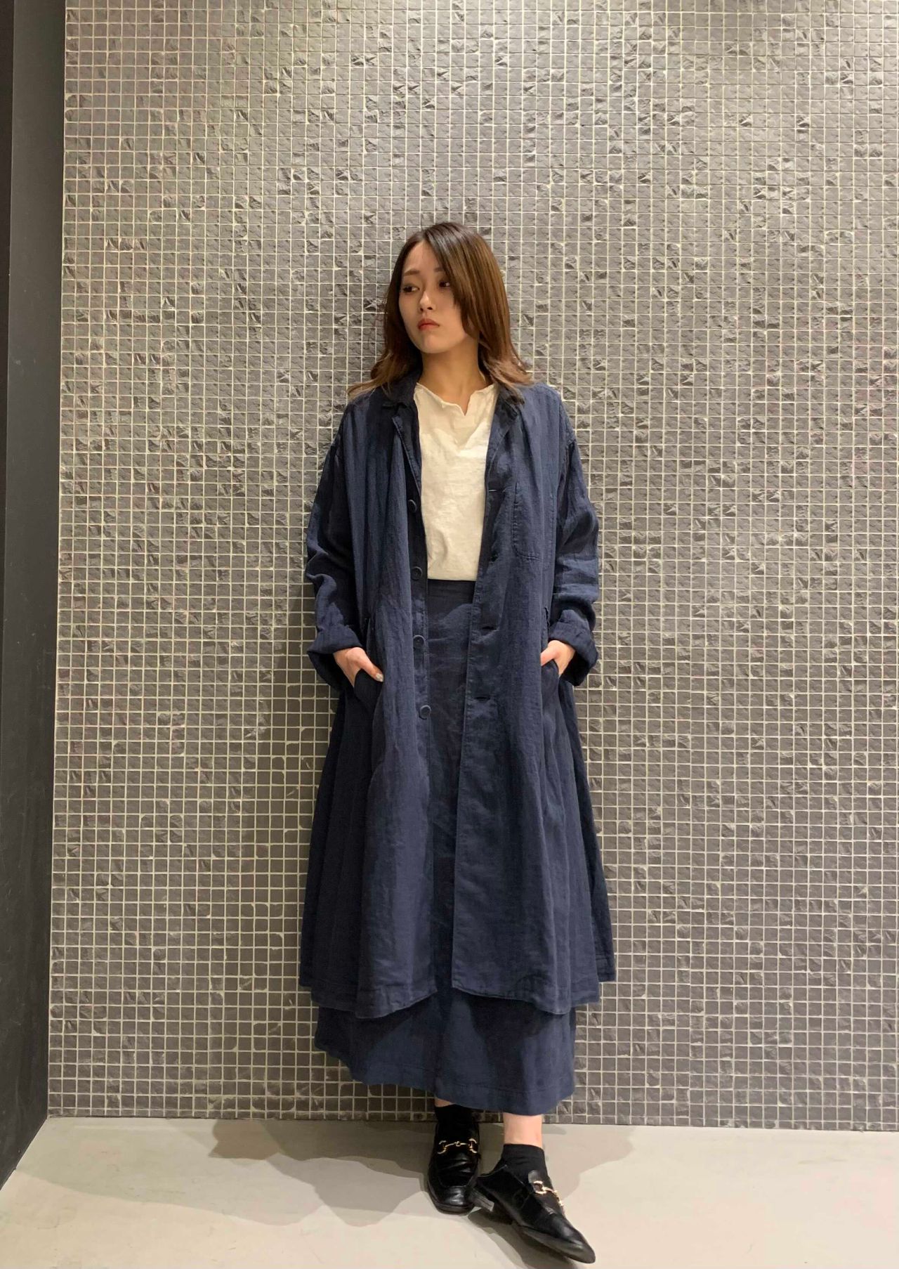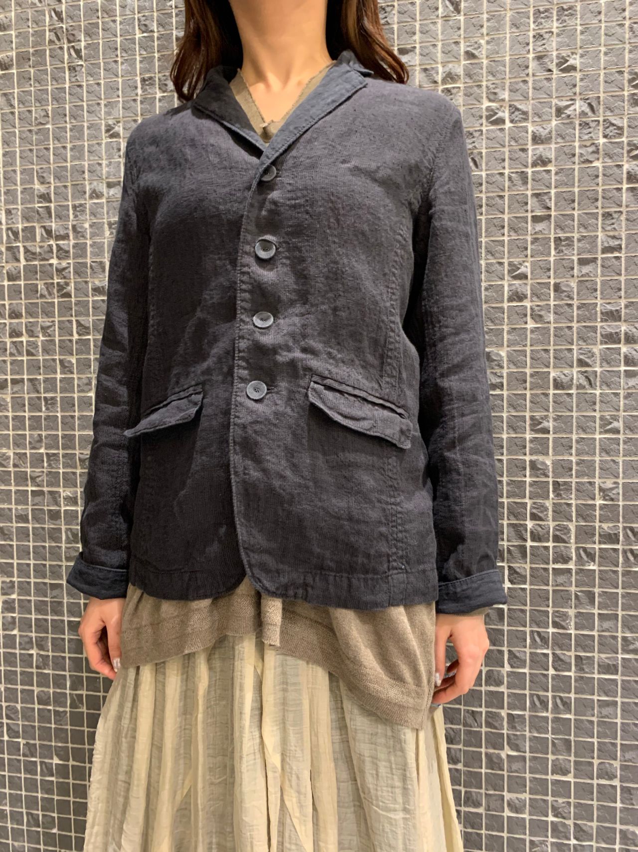 加工によってリネンっぽいハリ感はなく着やすいセットアップ。