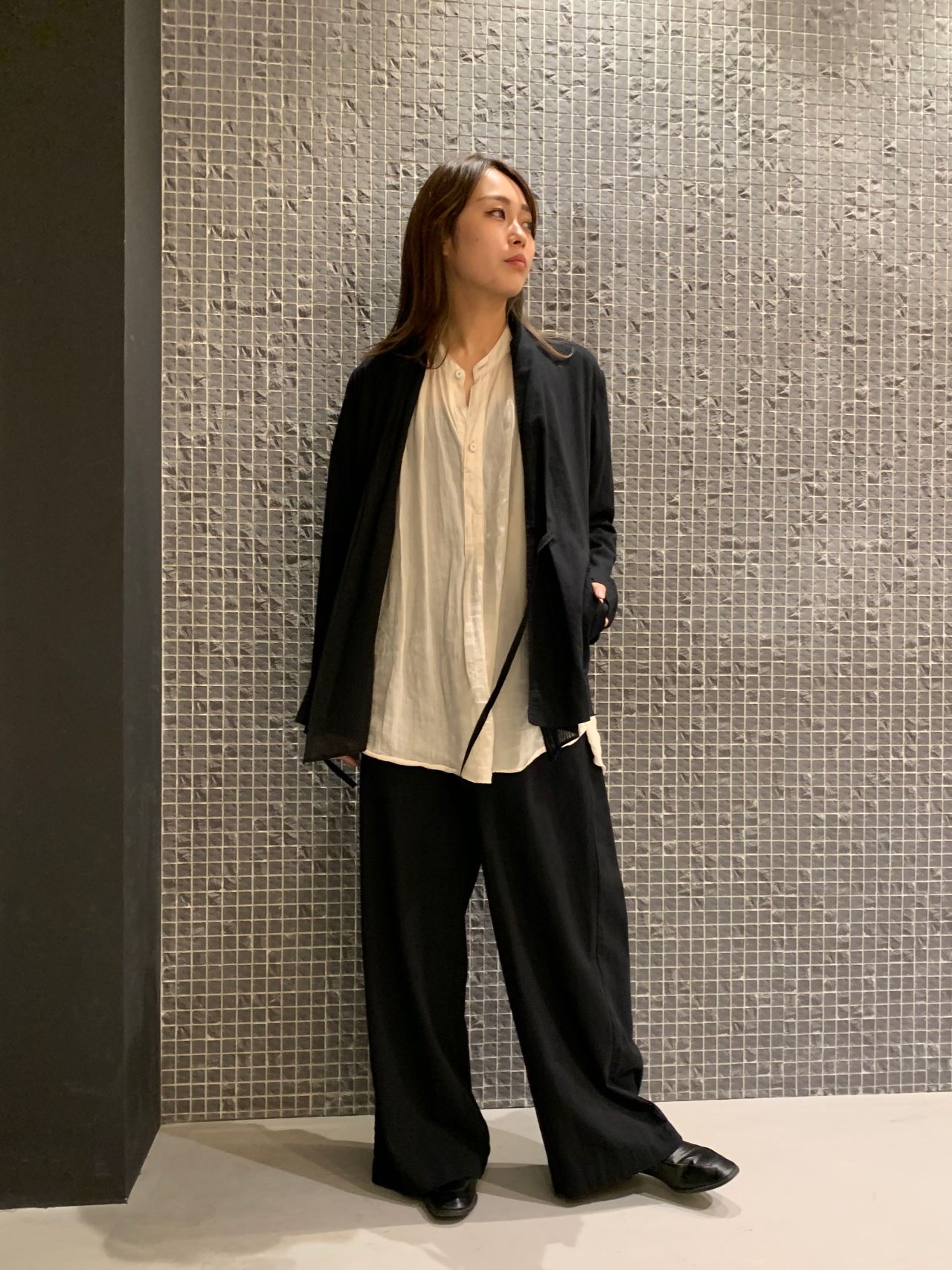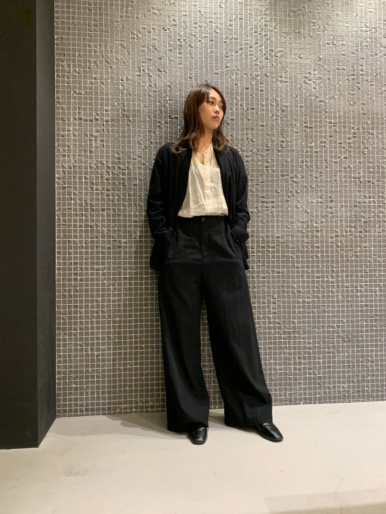 パンツは丈が長めで163センチの私でも裾が床に着くくらいの長さです。履き心地がすごく良く軽いので日常のおうち時間でも少しのお出かけにも活躍するアイテムだと思います。