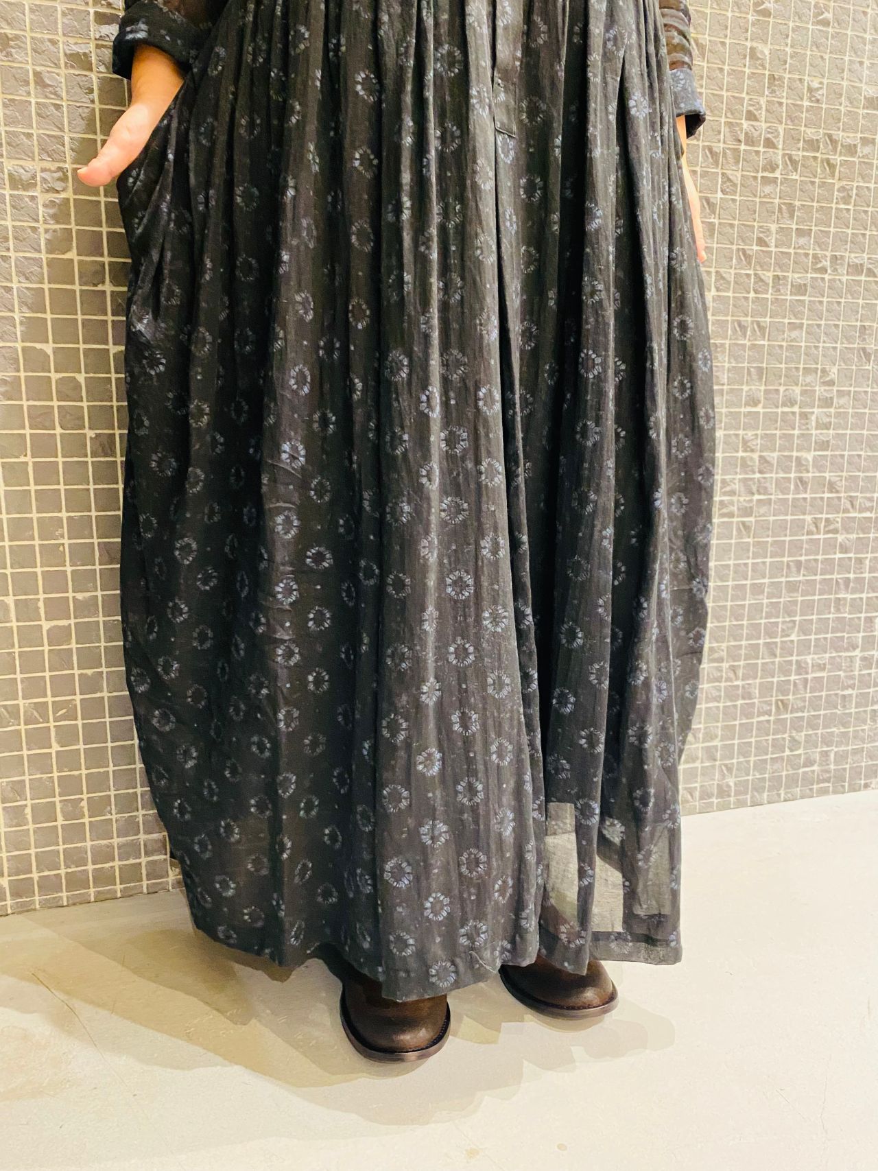 花にもリングに見えるプリントモチーフを、重ねて染めていく地染めオーバーにて