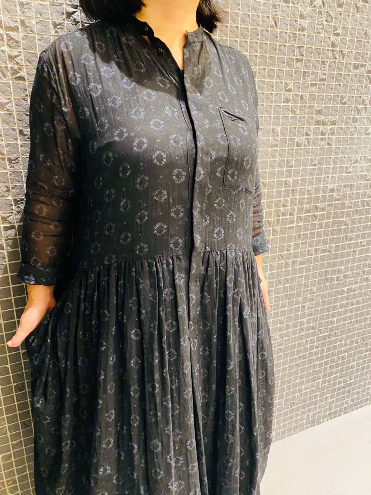 コートの裾から、軽やかな素材が見えるコーディネートもおすすめ。