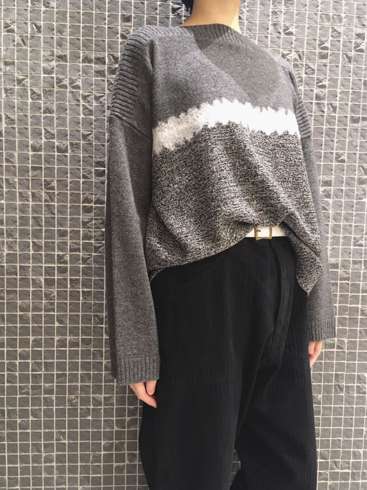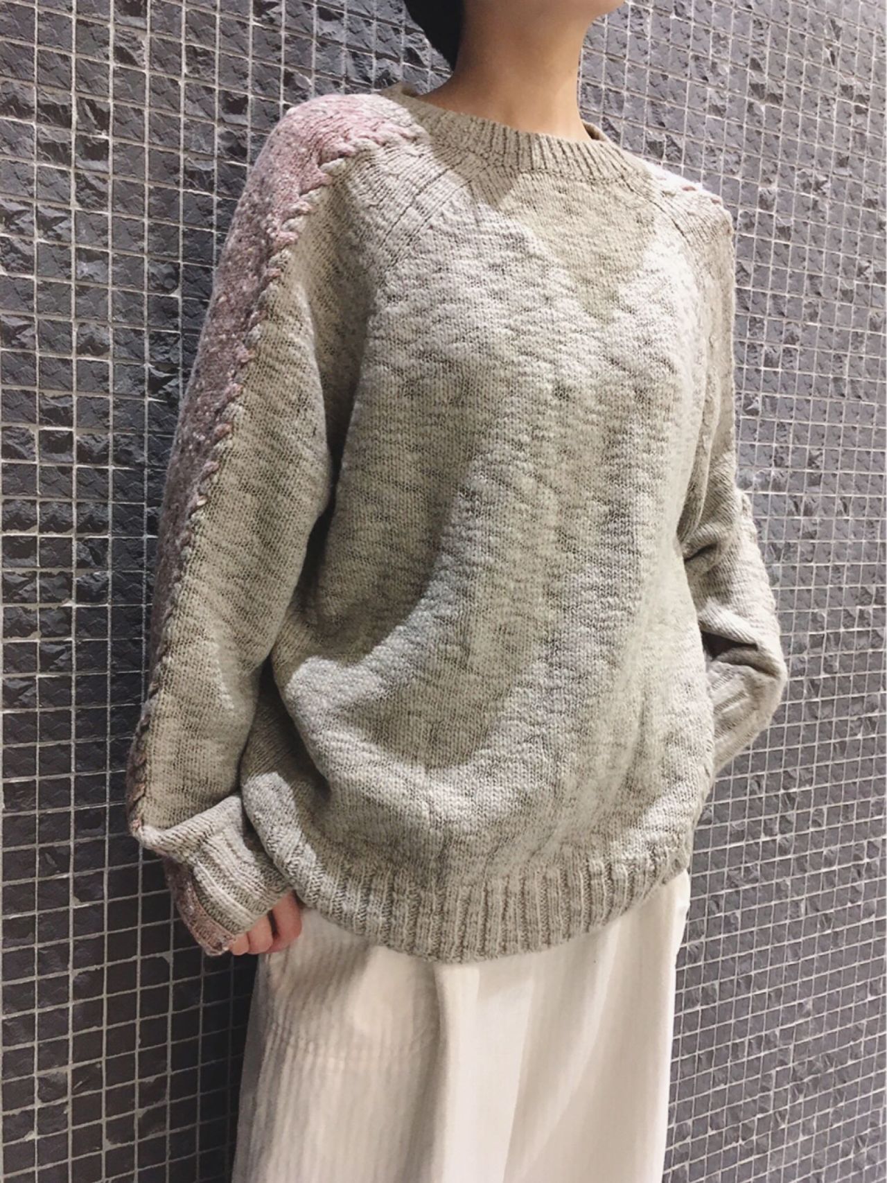 ニードルパンチ パッチワークボートネックプルオーバーno.2182 col.グレー(着用)/ブラウン ¥26,400