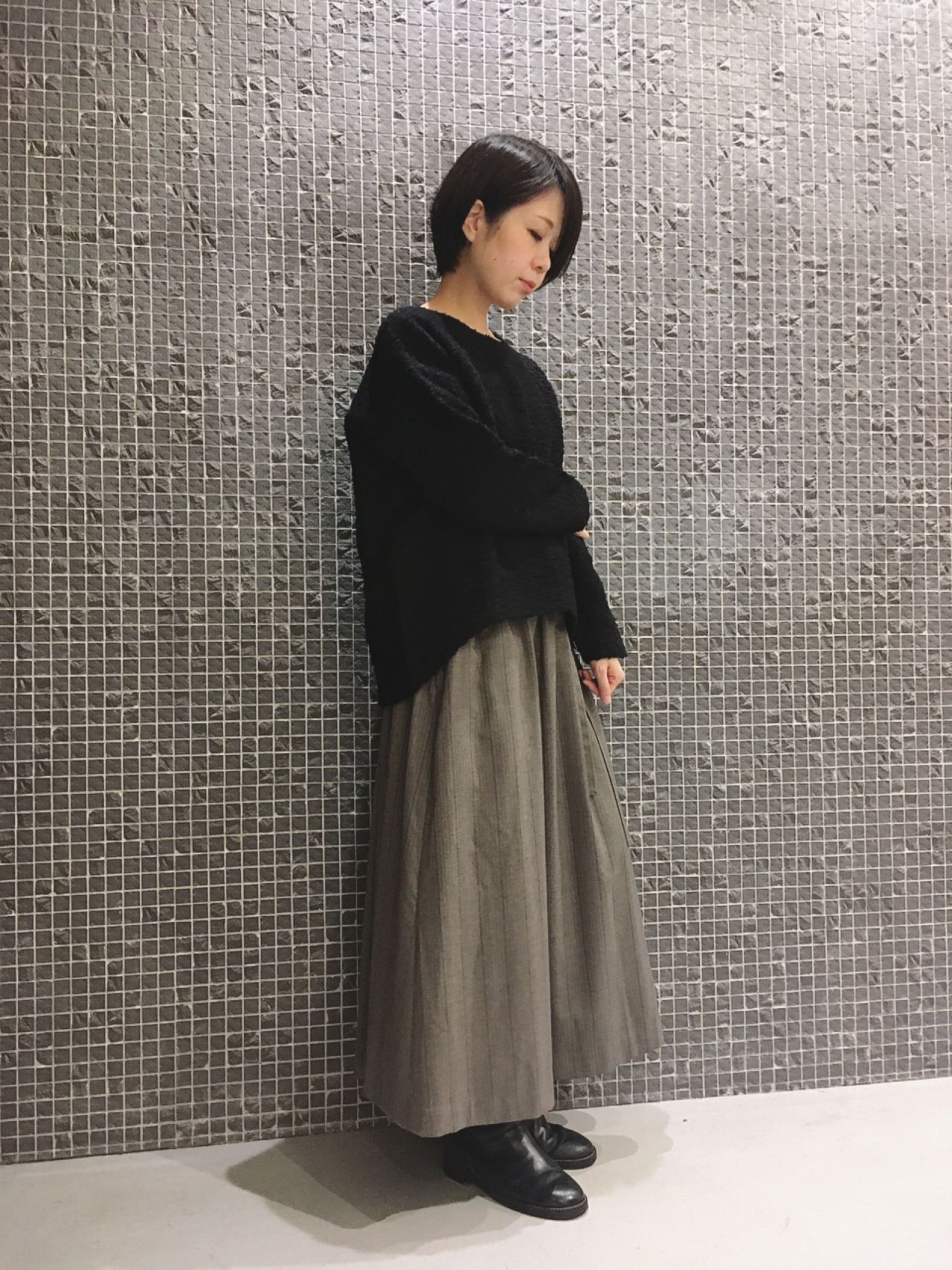 変形へリンボン裏起毛スカートno.7928 col.ベージュ(34サイズ着用)/ブラック ¥26,400