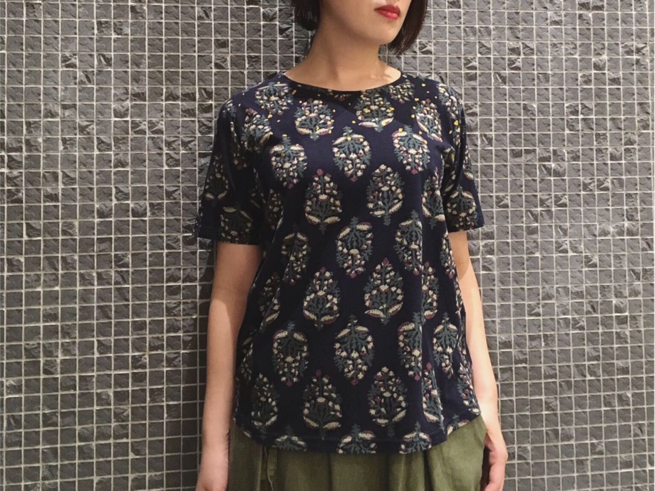 ブロックプリント風半袖プルオーバー