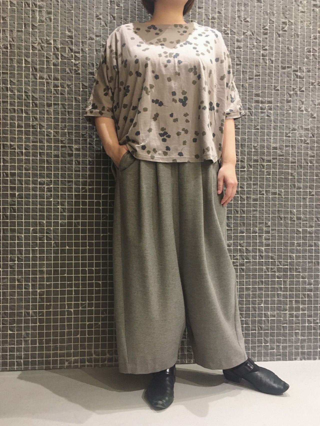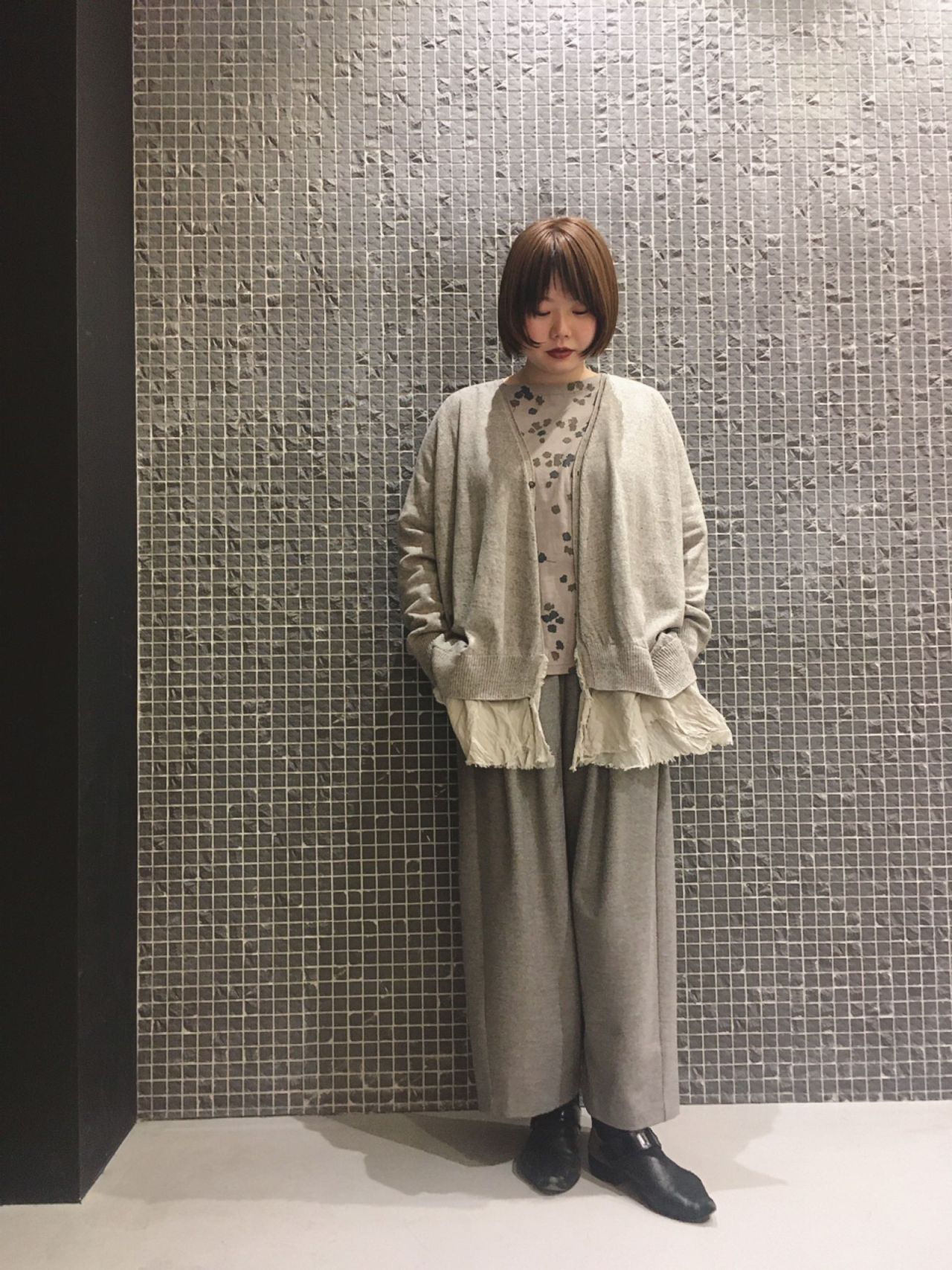 グレージュでまとめた春らしいコーディネート。