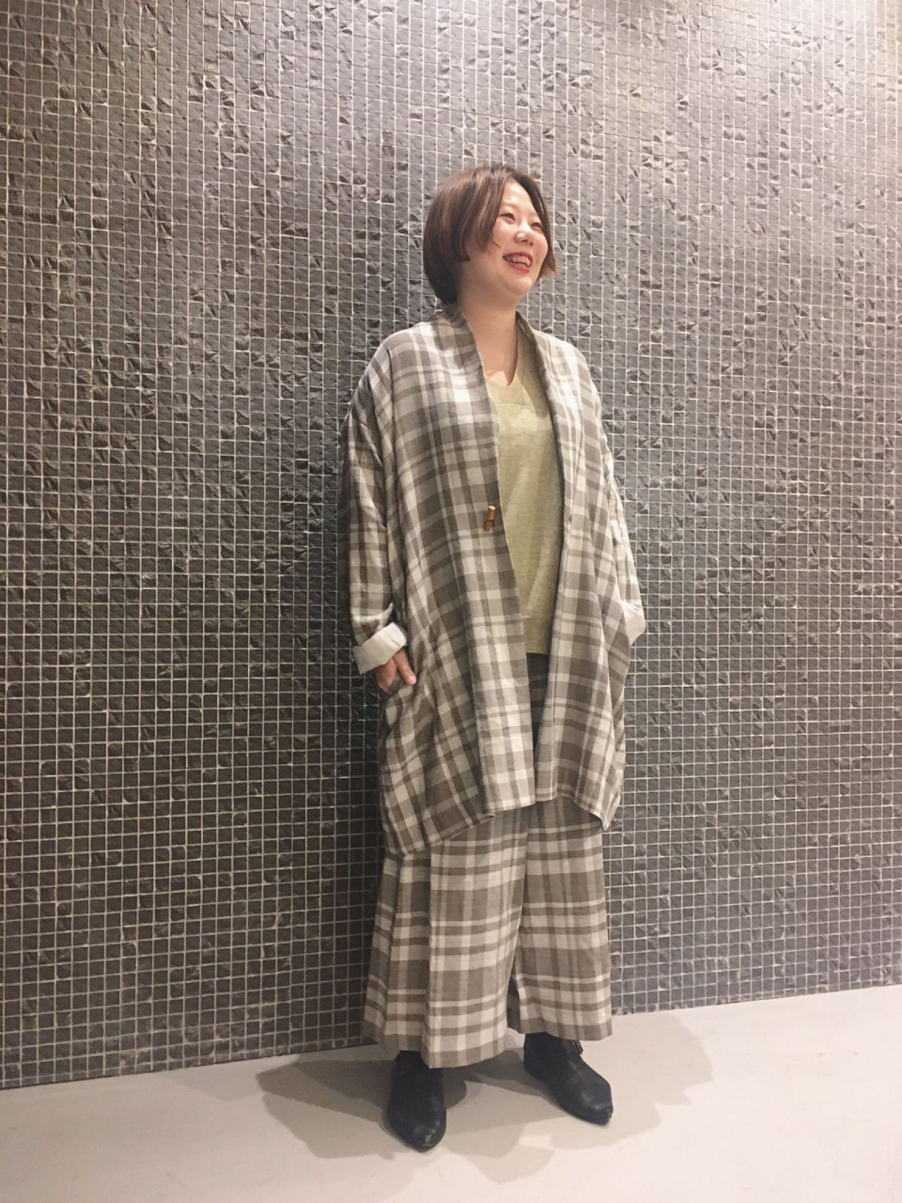 綿麻TOPチェックコート