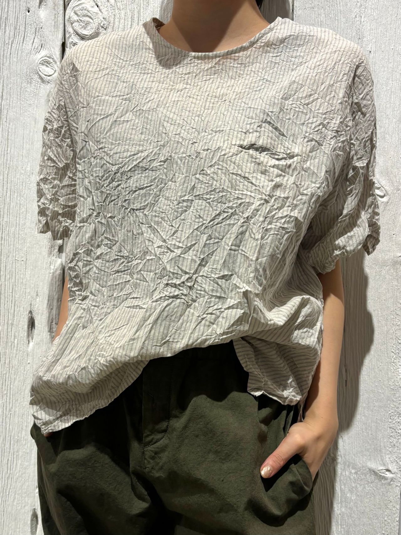 綿麻ストライプブラウス