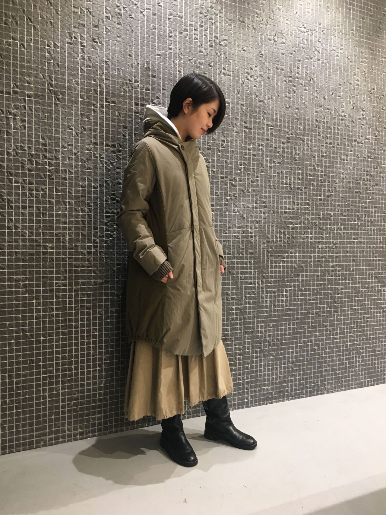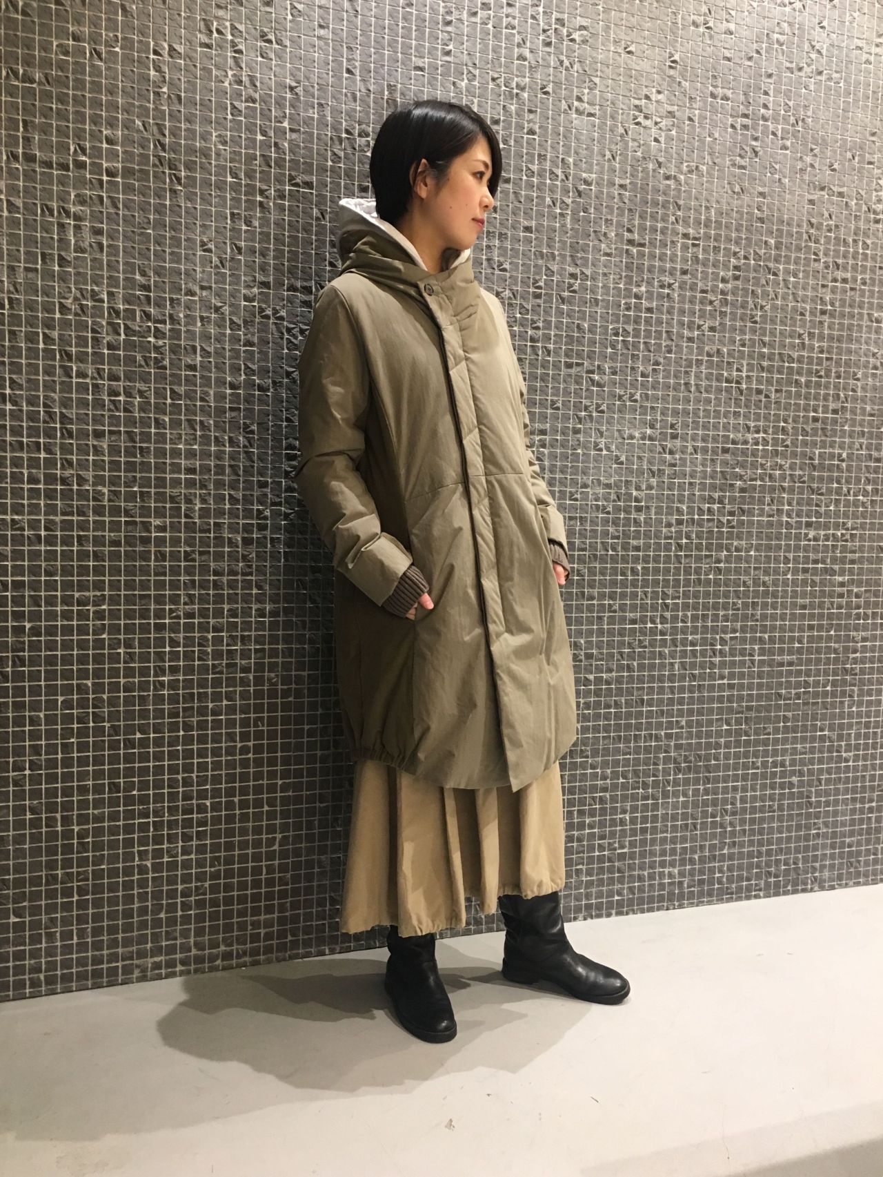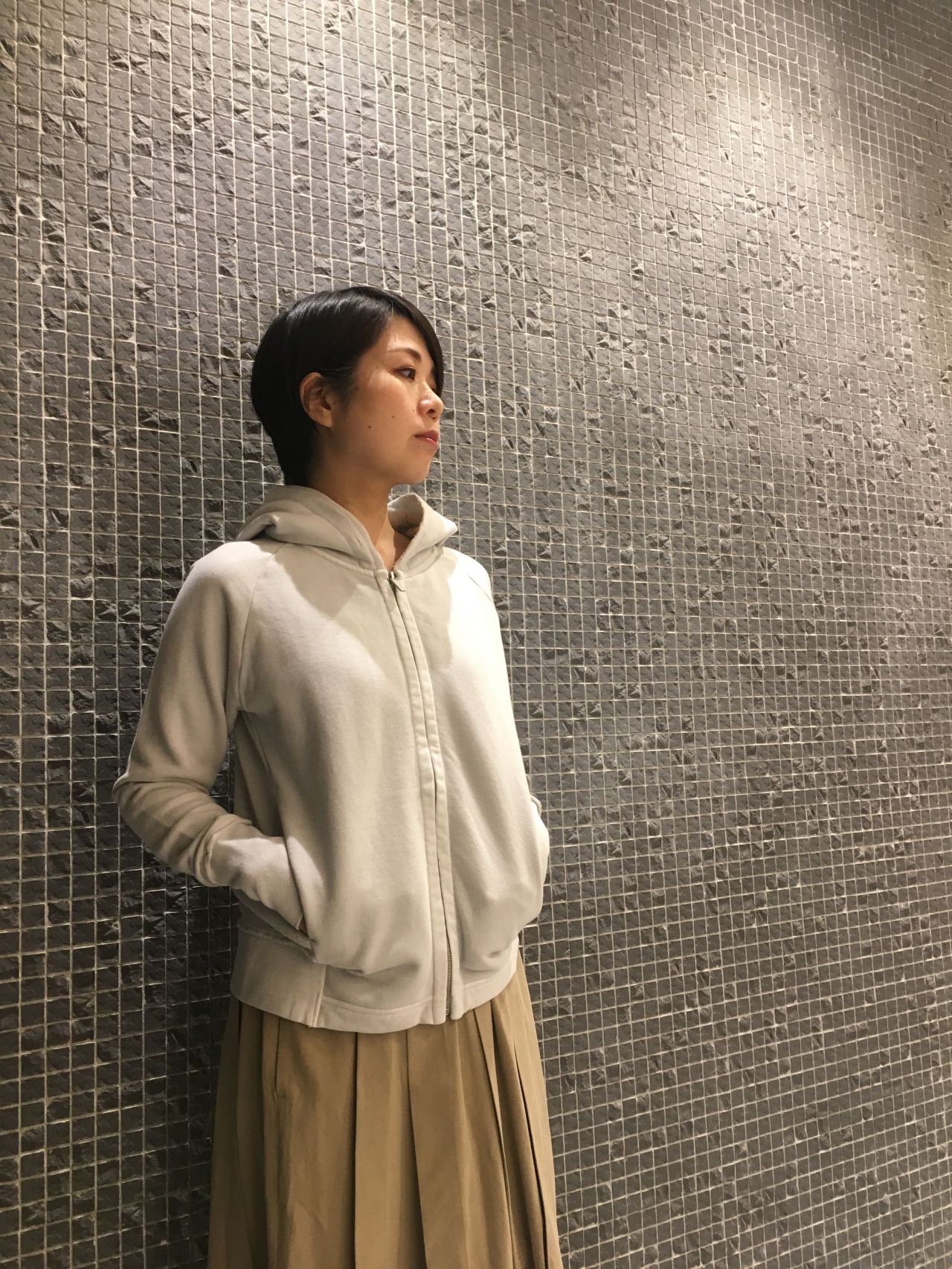 コートの中に重ね着出来るコンパクトシルエットのパーカーです。