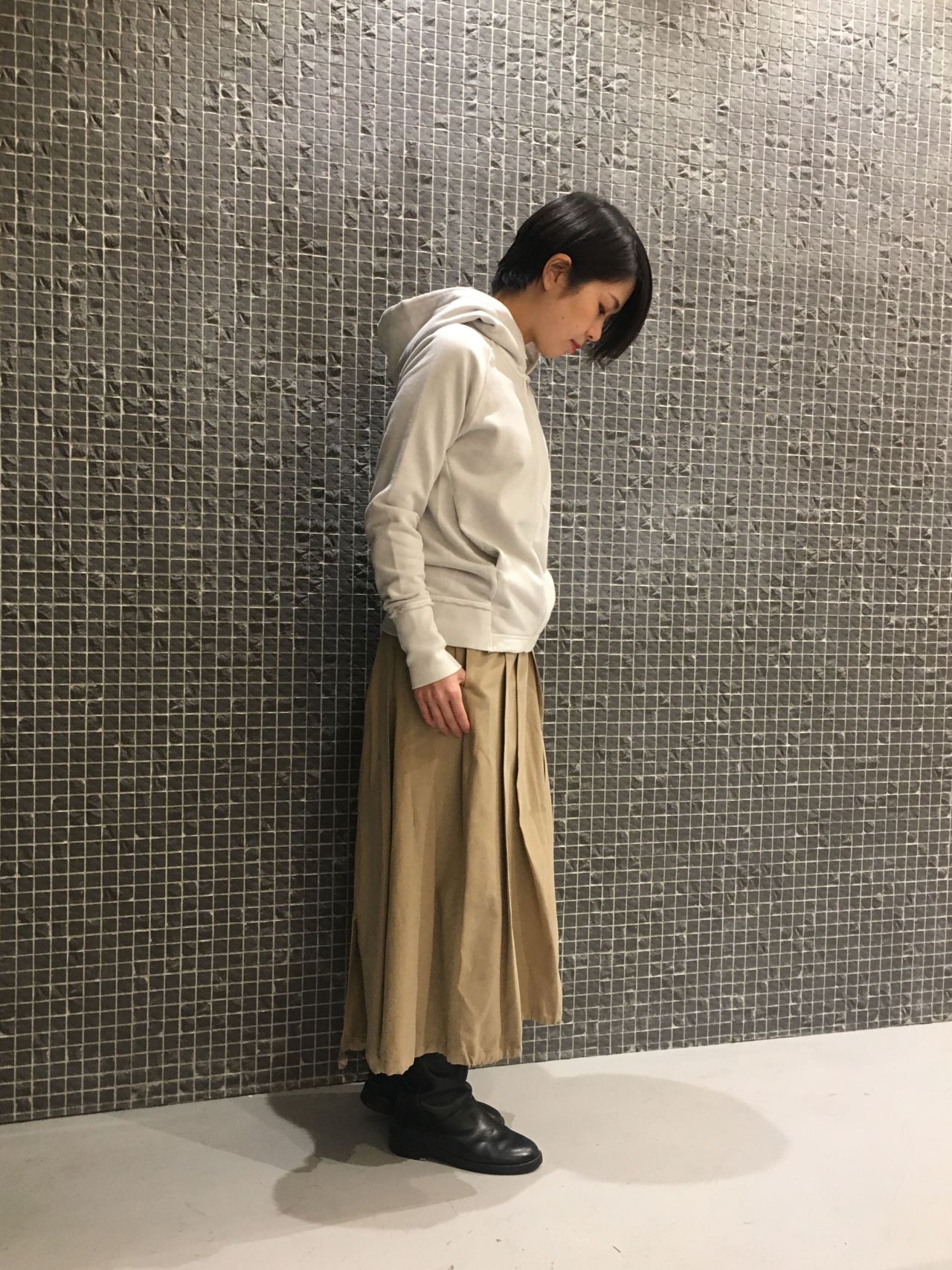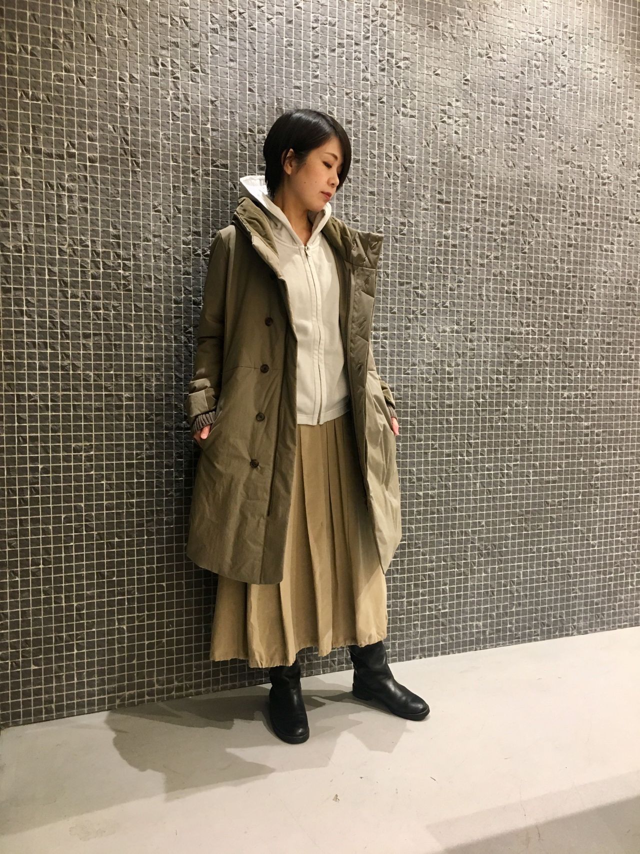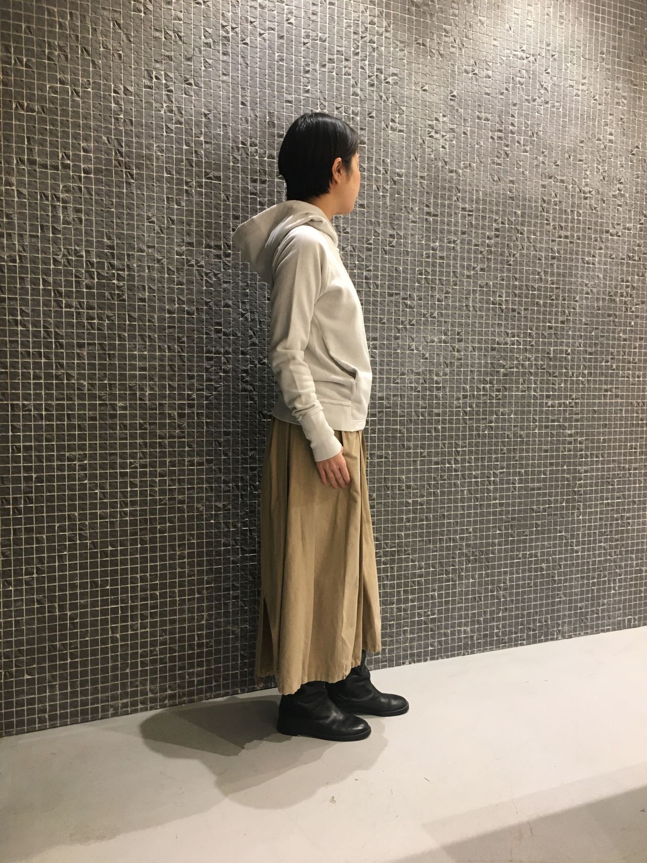 コートの中に重ね着出来るコンパクトシルエットのパーカーです。