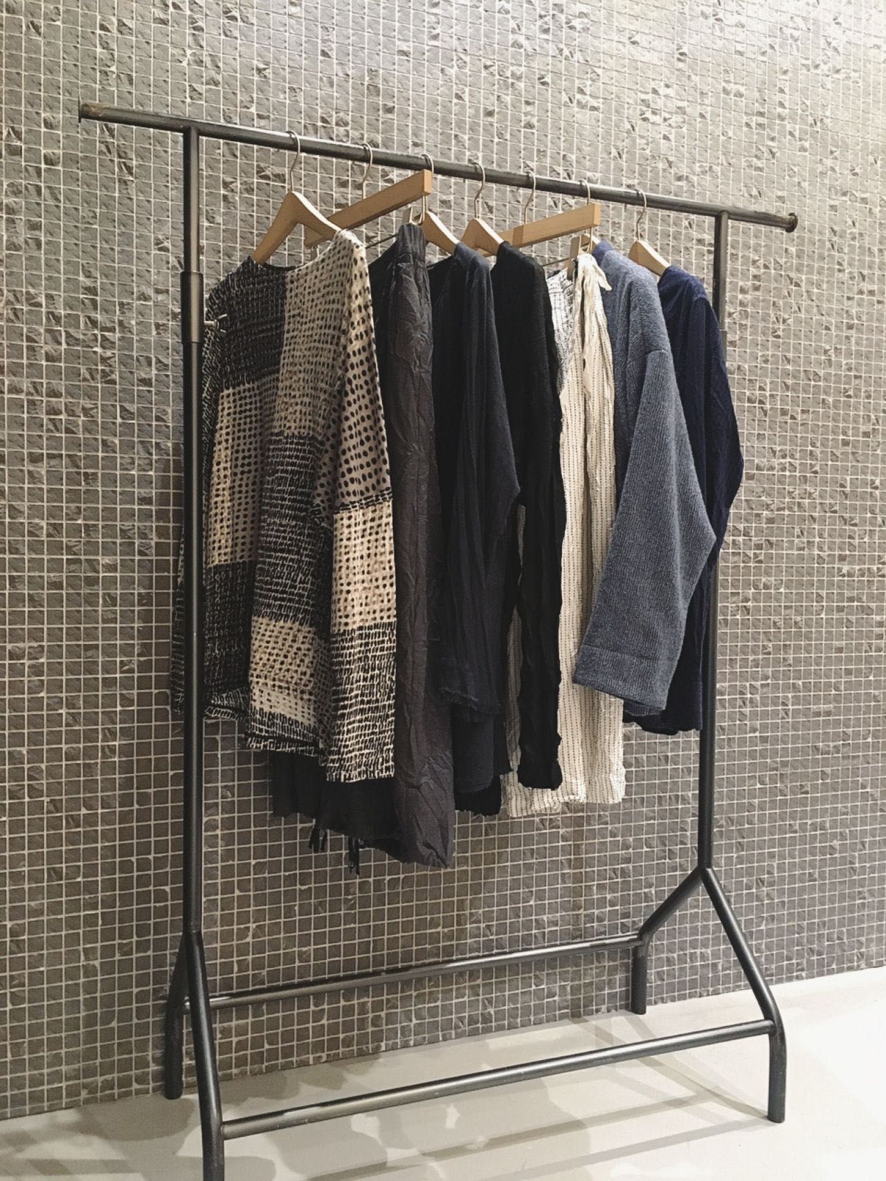レーヨンのしなやかさ、製品染めによる染着差など、表情と質感が光るアイテム
