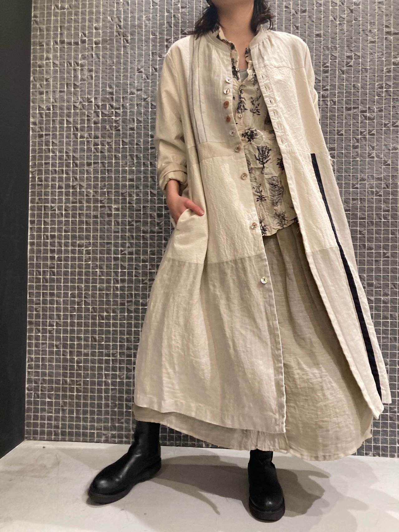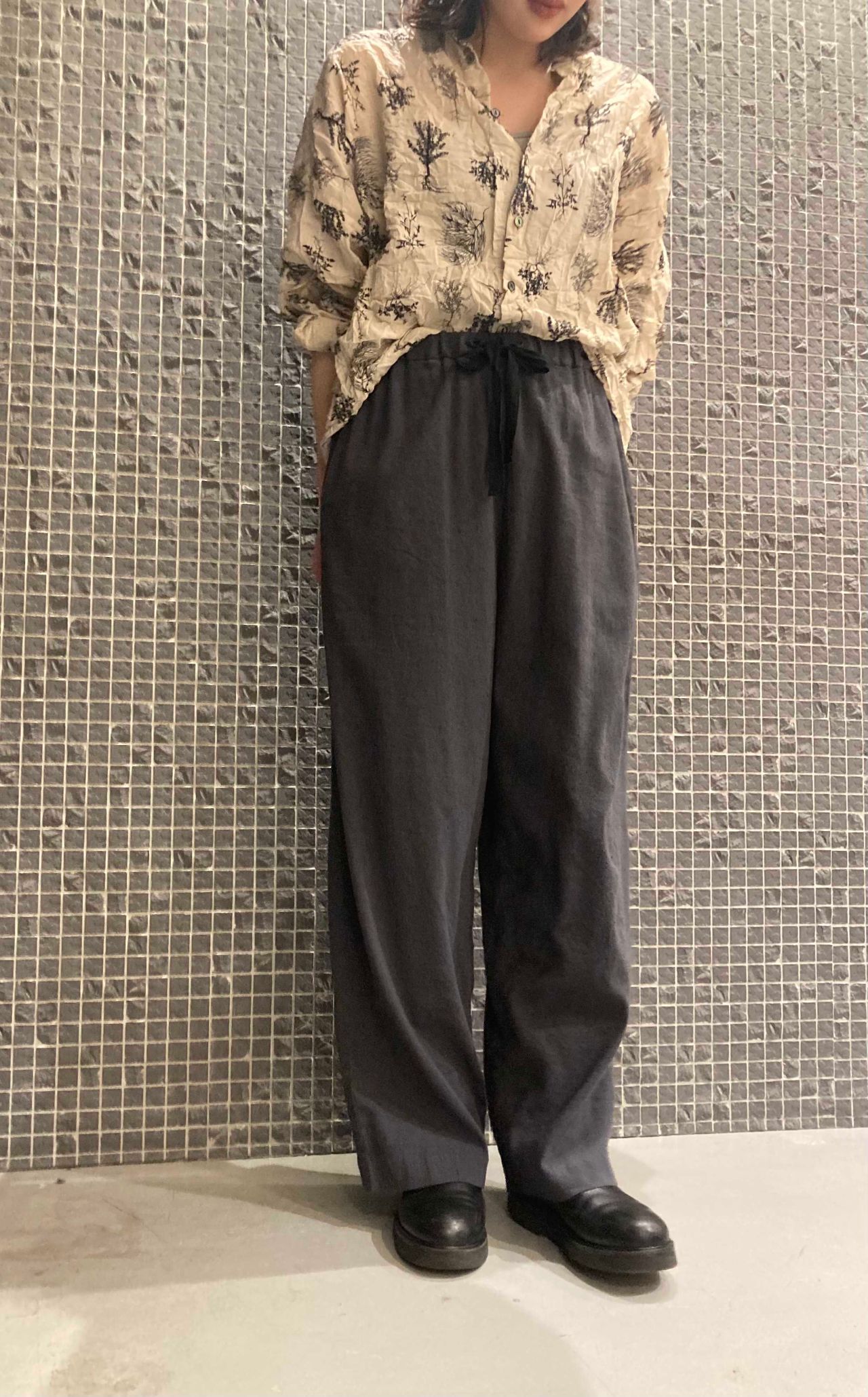 ナイロンと極細のラミーを交差して織ることで薄く透明感のある仕上がりに。