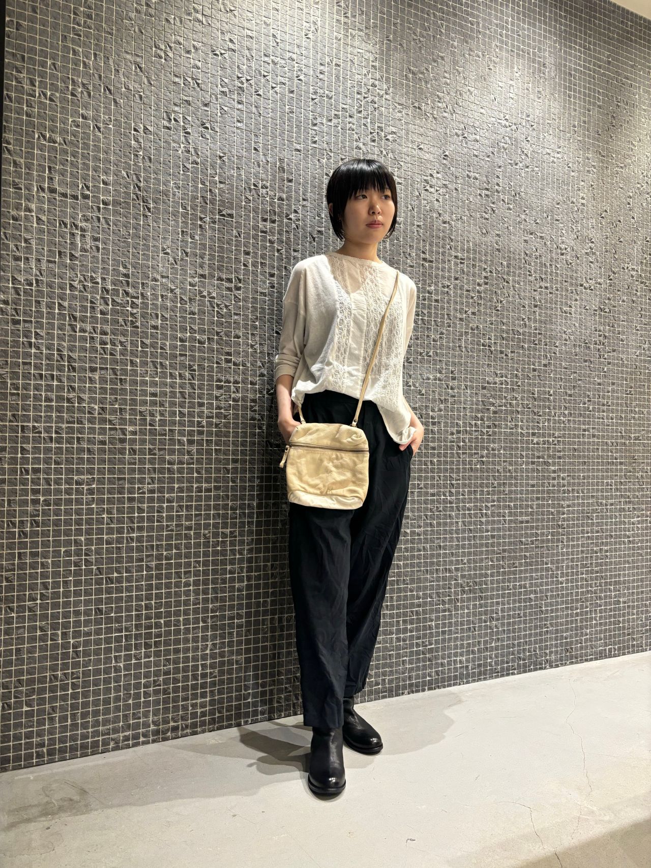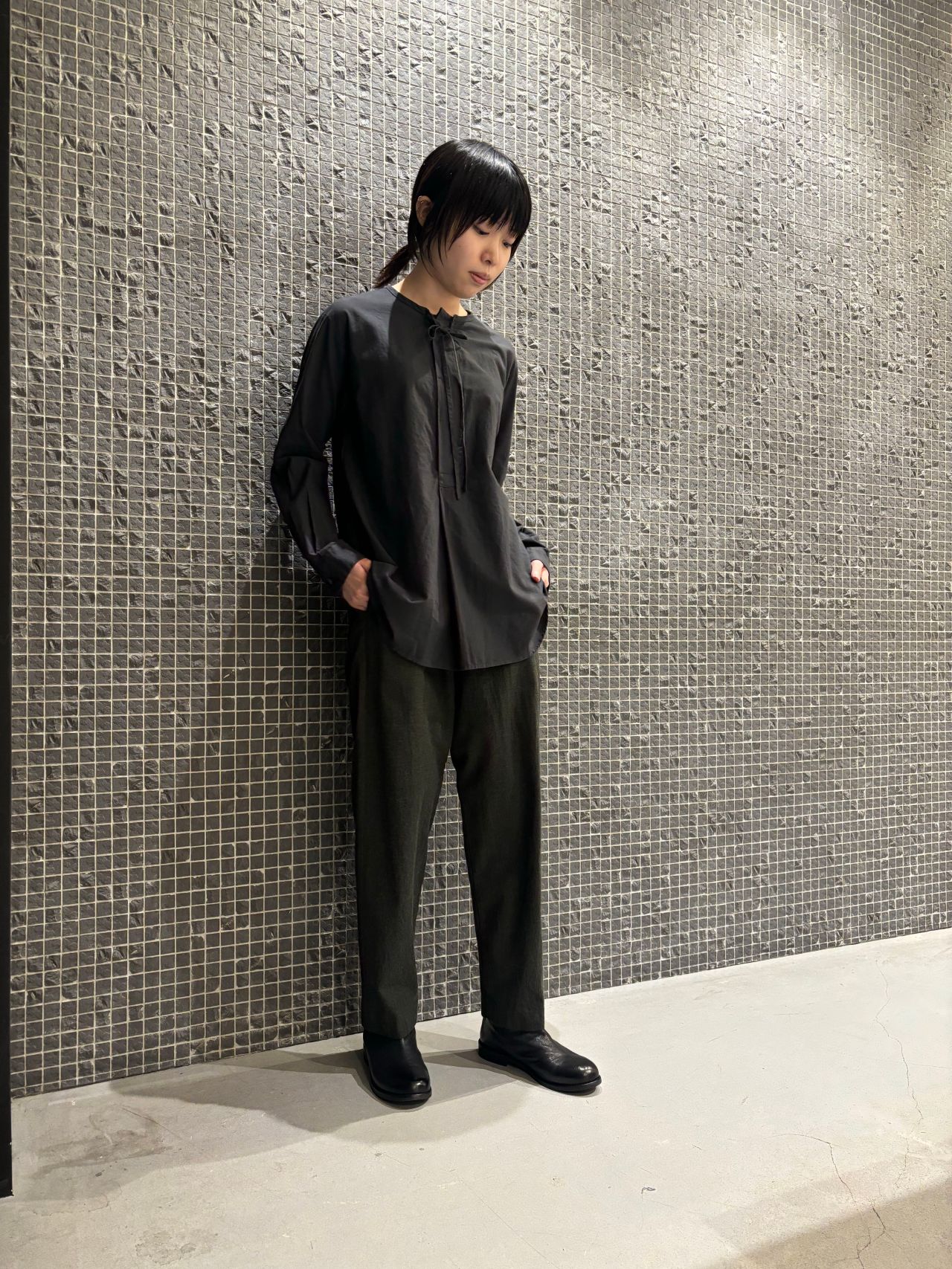 blouse no.6561 col.charcoal,off-white,natural size.36 ¥26,400