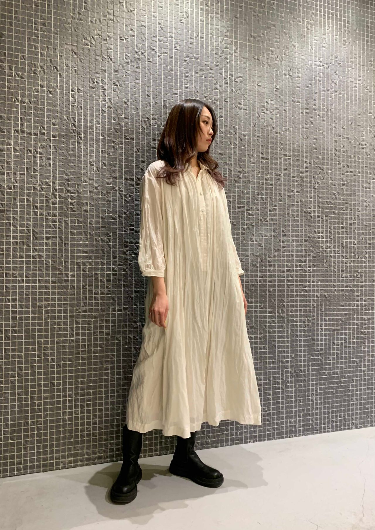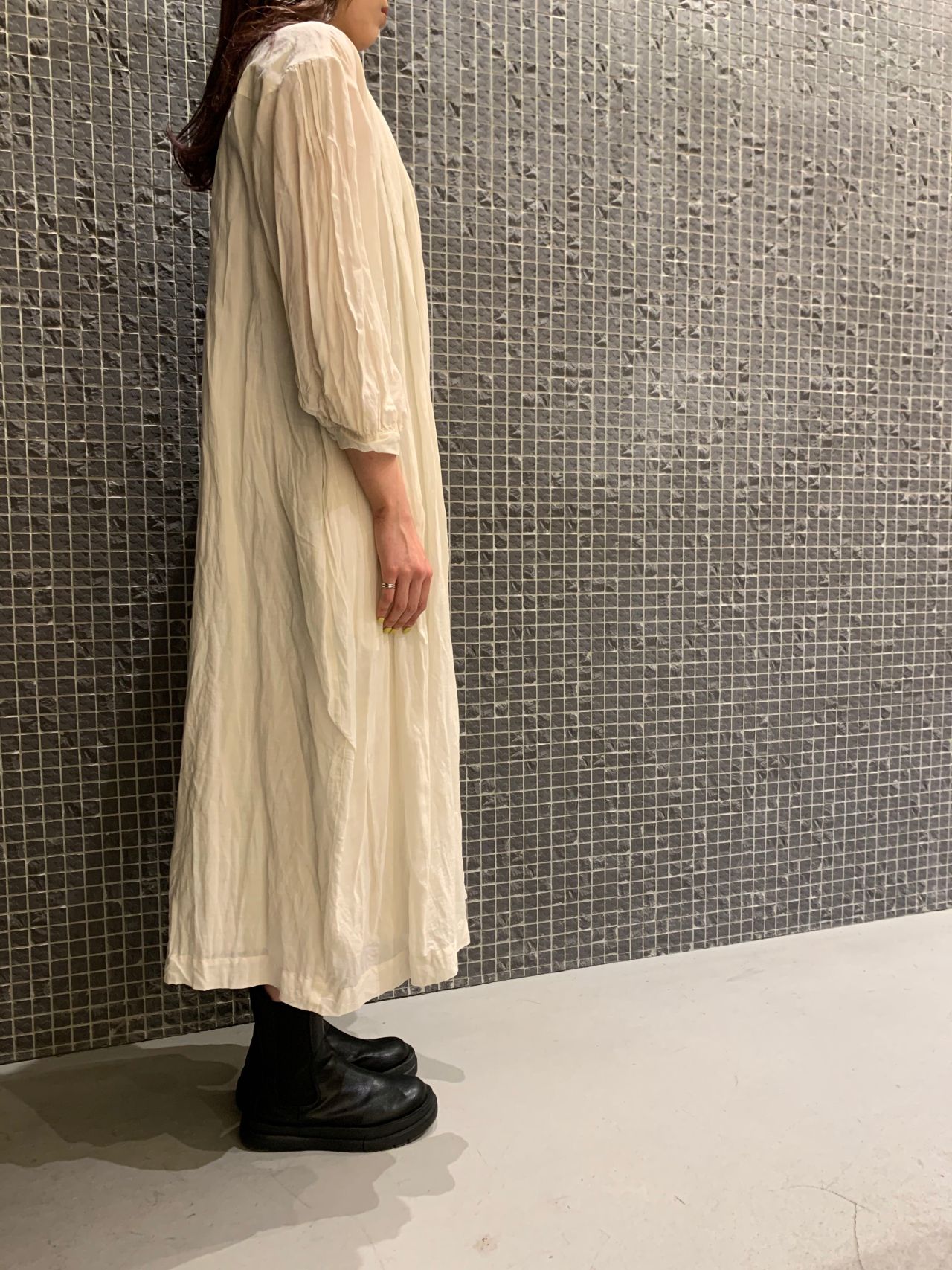 ワンピースは生地の軽さとギャザーでボリュームたっぷりで立体感がでます。