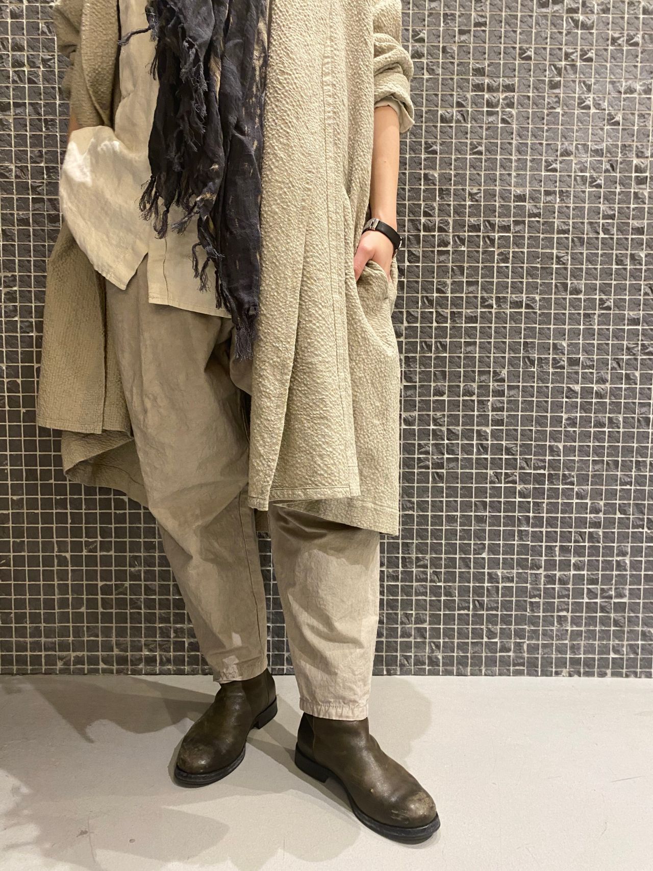 インナーを長袖や半袖に変えて、季節問わず着られるのがパドカレコートの醍醐味。