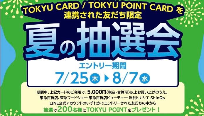 上記期間中、東急カードをご利用で税込5,000円以上お買い上げのうえ、東急百貨店公式LINEアカウントでエントリーされたお友だちの中から