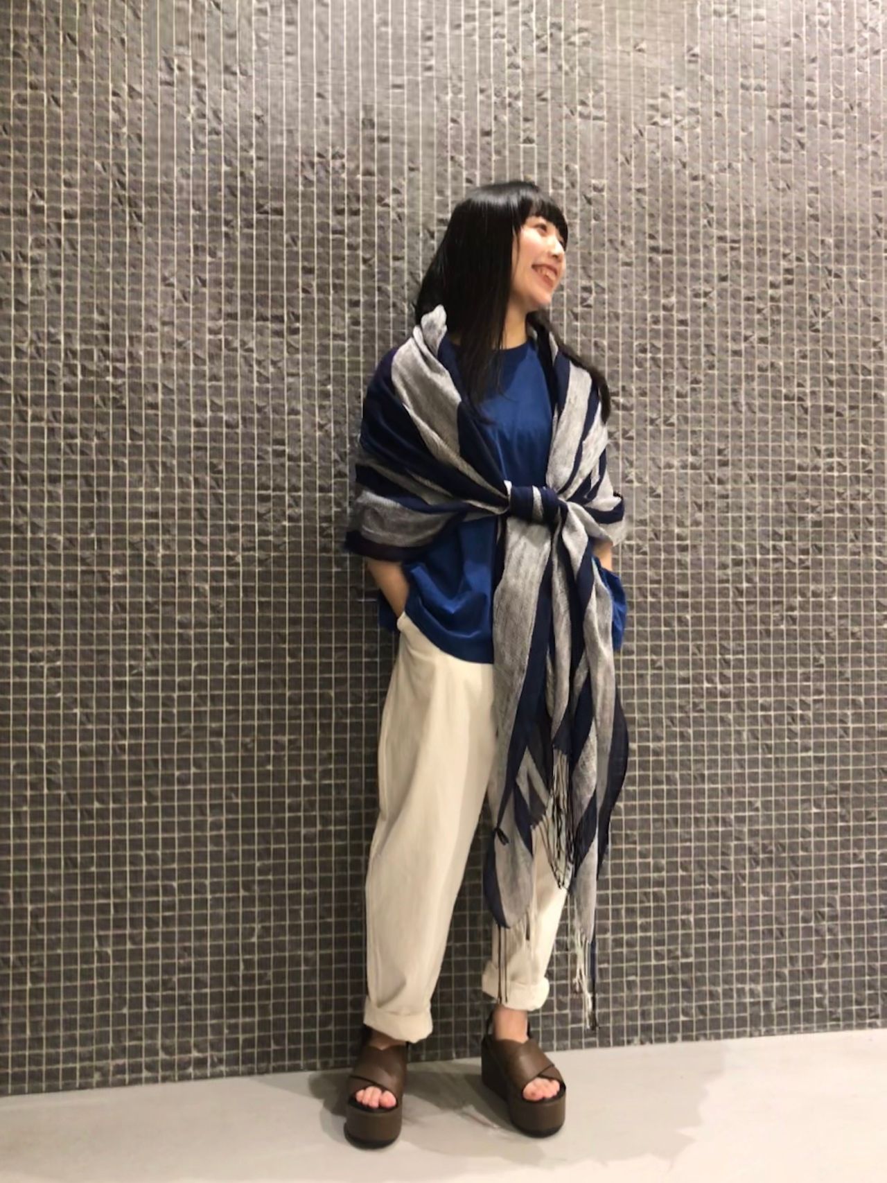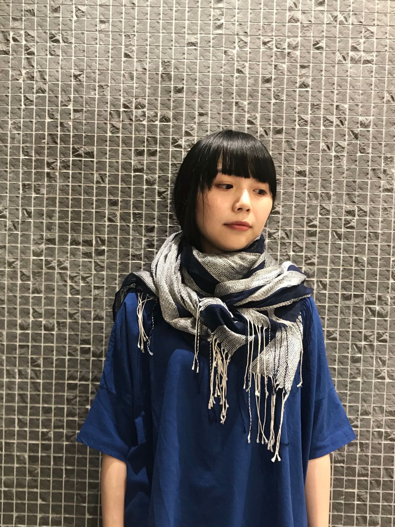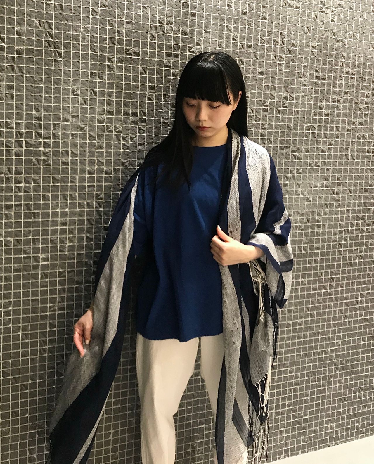 今回はストールをメインにして、爽やかにブルーとホワイトのスタイリングでまとめてみました。