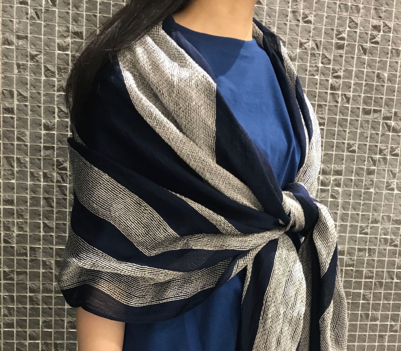 室内では肩にかけて冷房対策としてもお使い頂けます。パドカレのストールは毎シーズン大人気なので、あっという間に完売してしまいます。気になる方はお早めにご連絡ください。