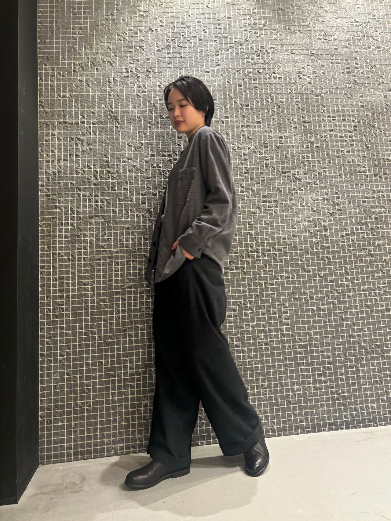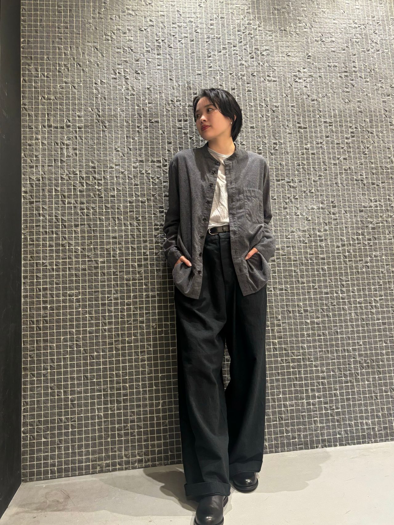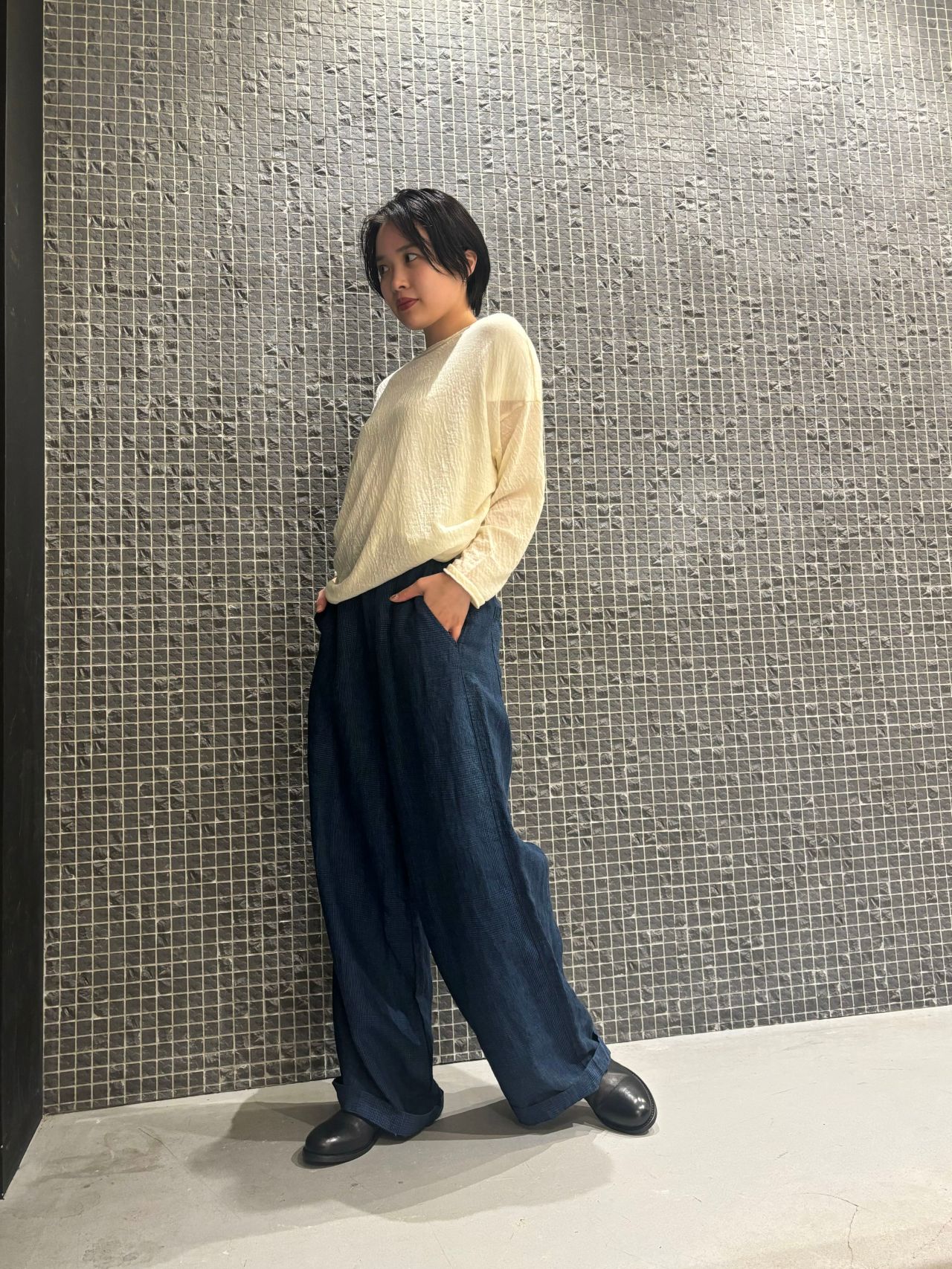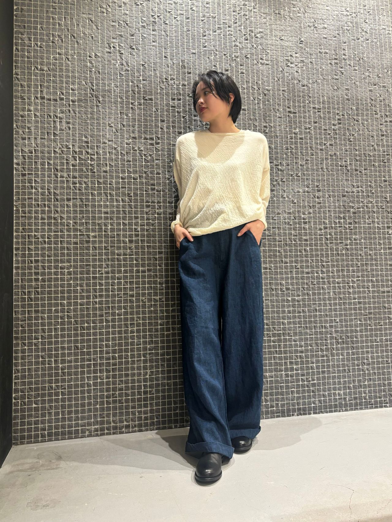blouse no.6621 col.charcoal,ivory size.34,36 ¥34,100