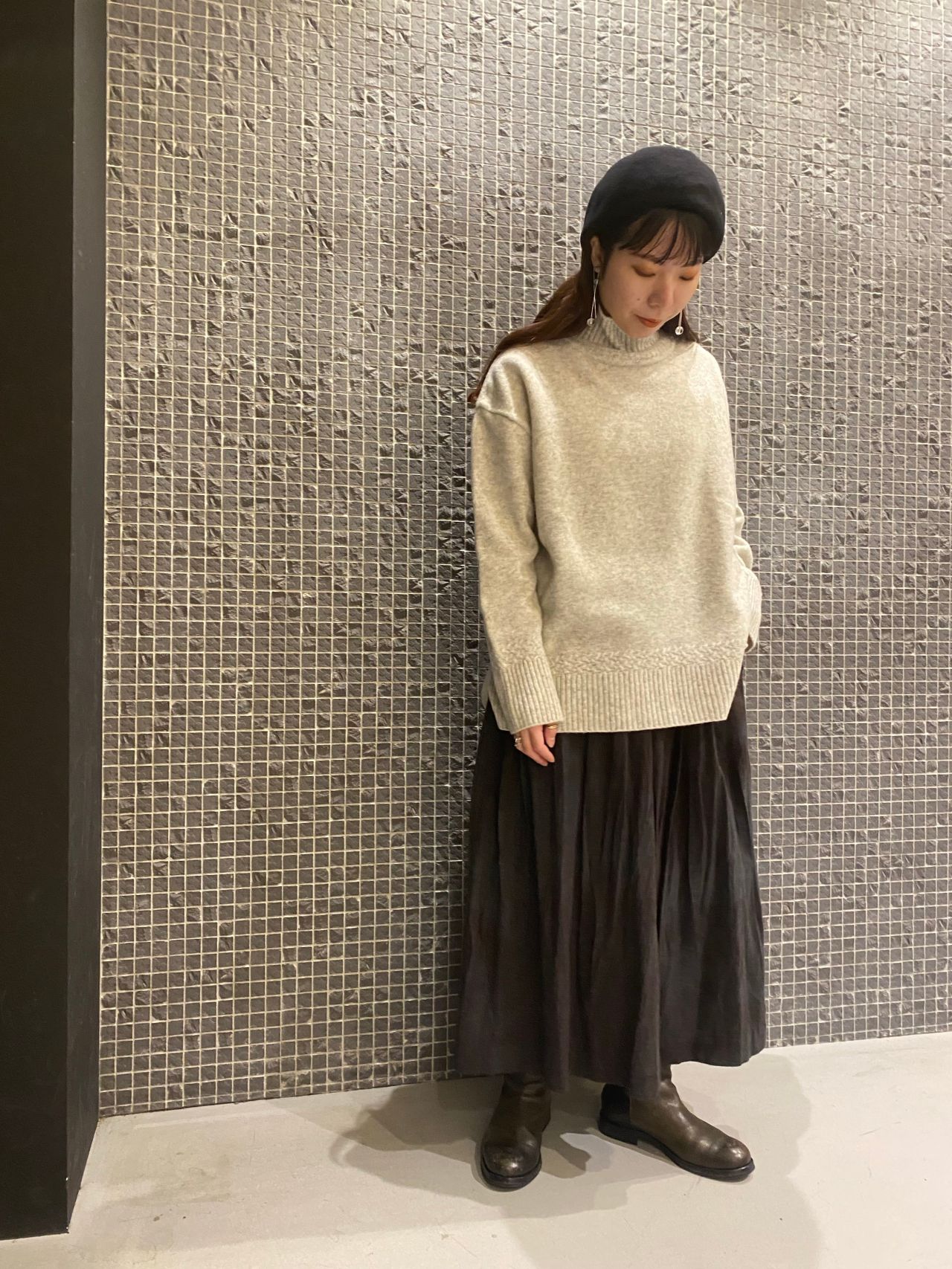 冬服に一着は持っていたい千鳥柄に、パドカレらしく染めを施したスカート。