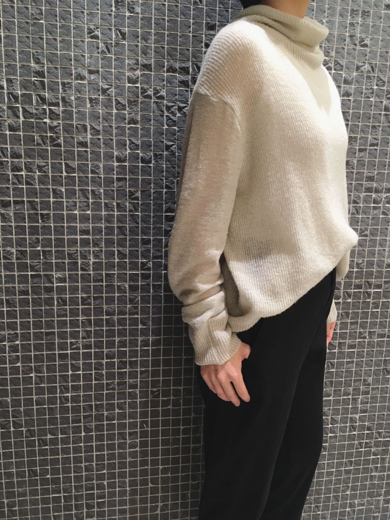 コートの中に着るのに最適な薄さとタートルネックの立ち具合。
