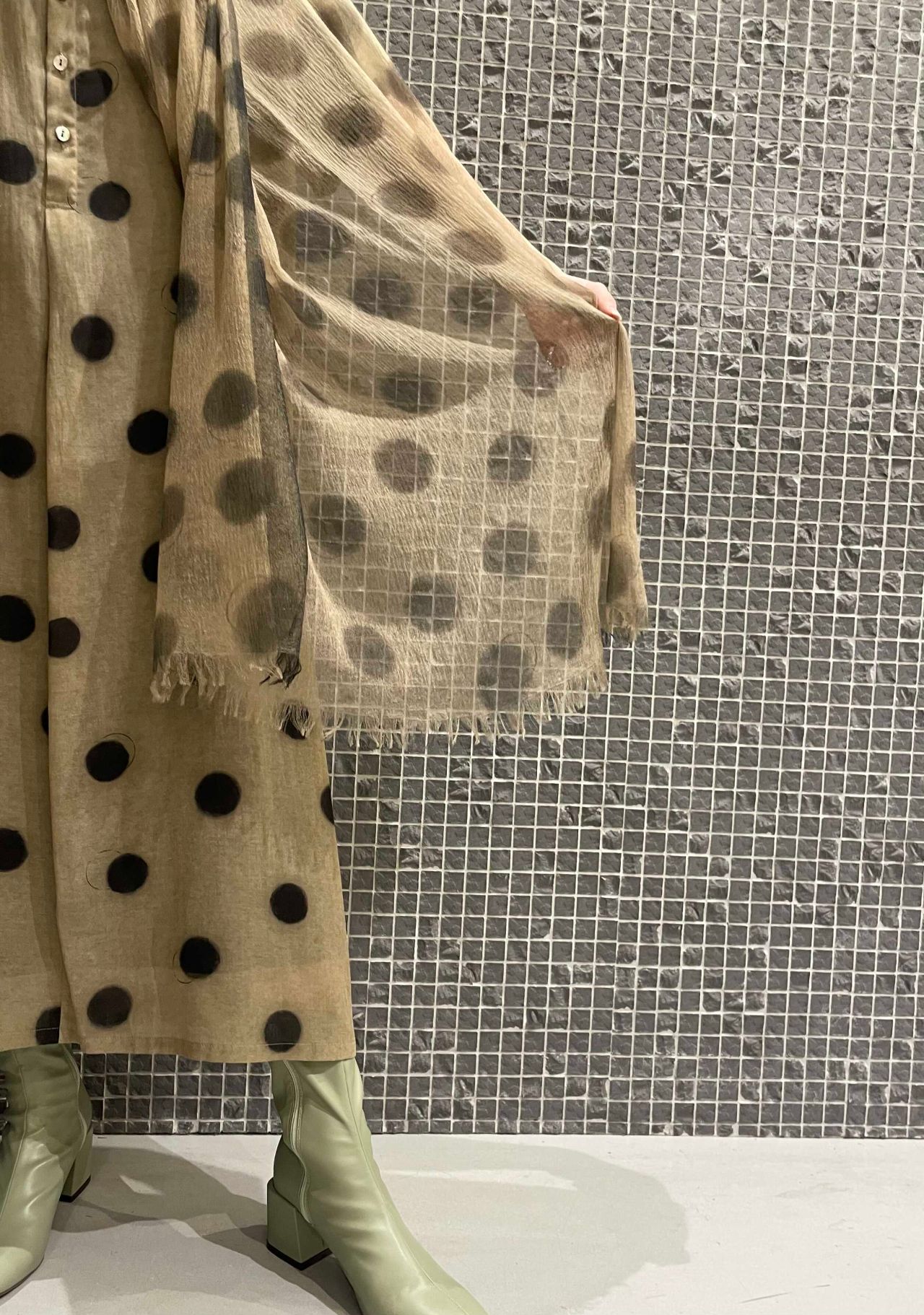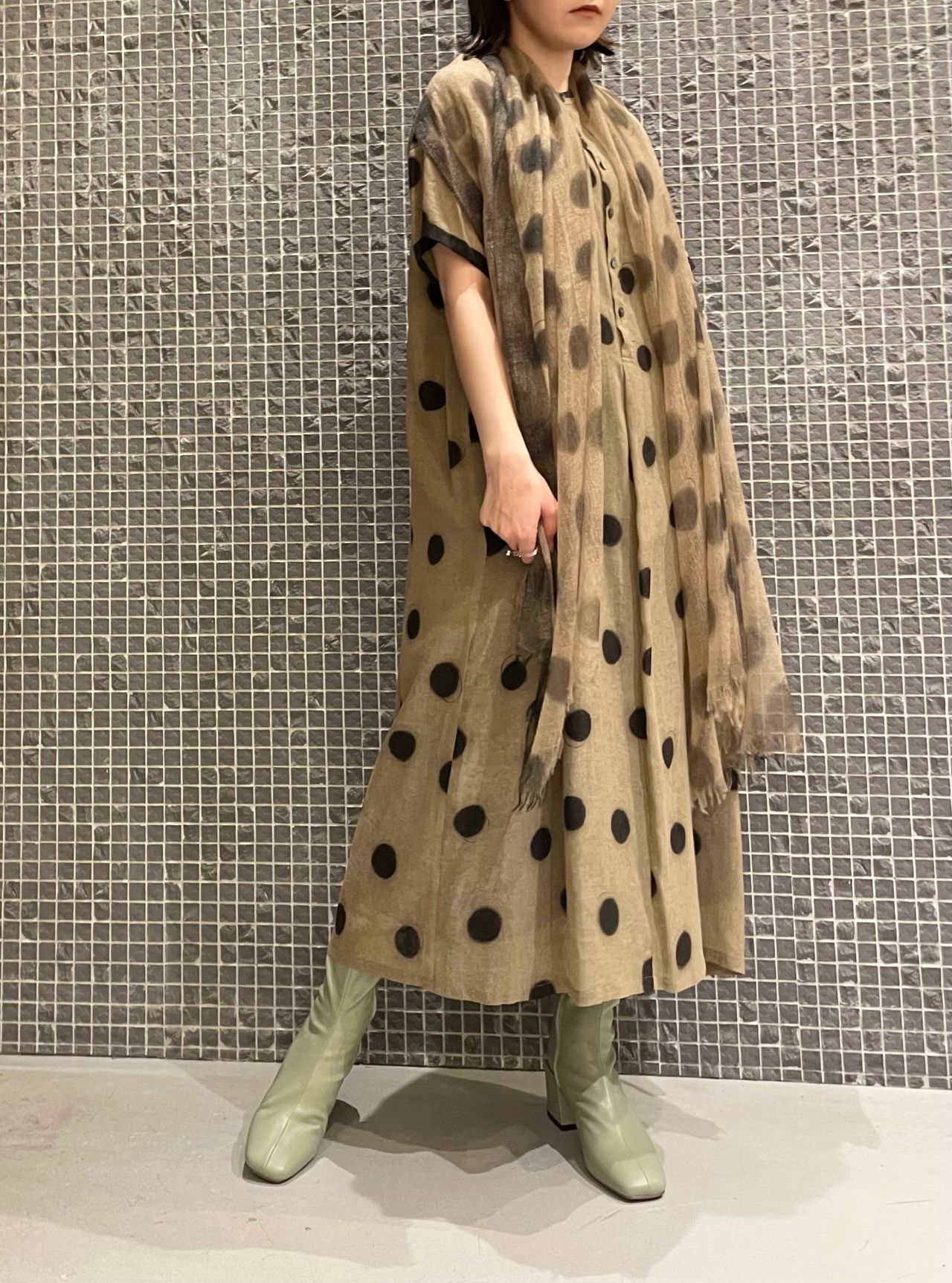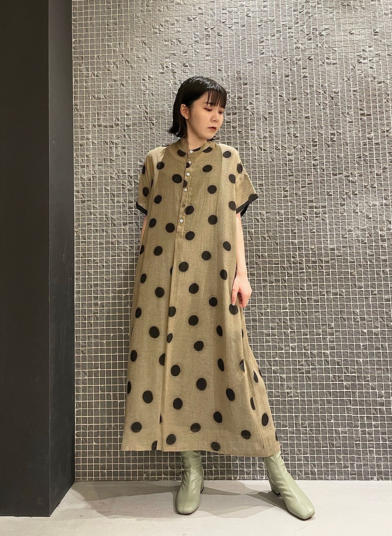 さりげない光沢感と上品な透け感が特徴のドットプリントワンピース。