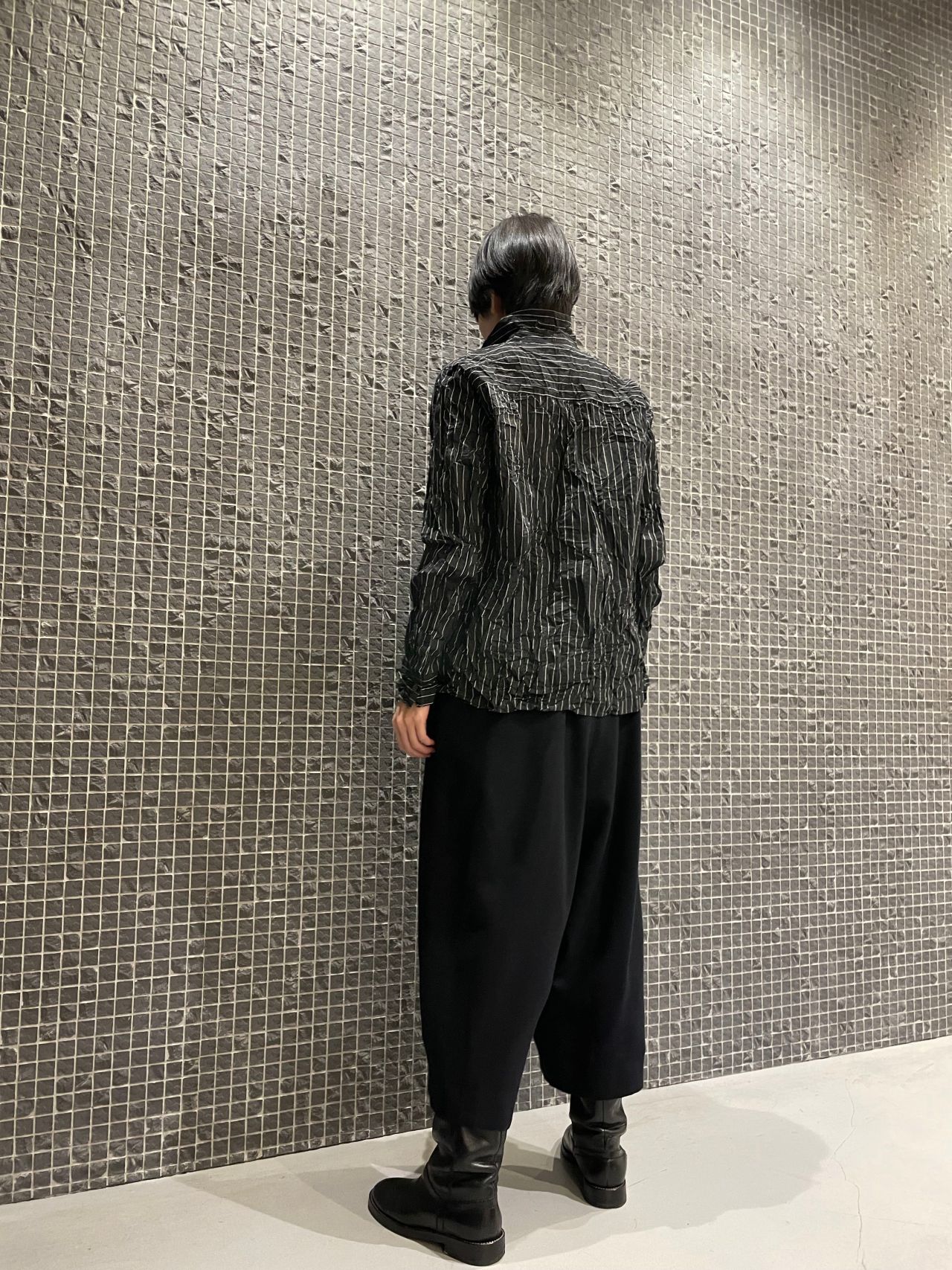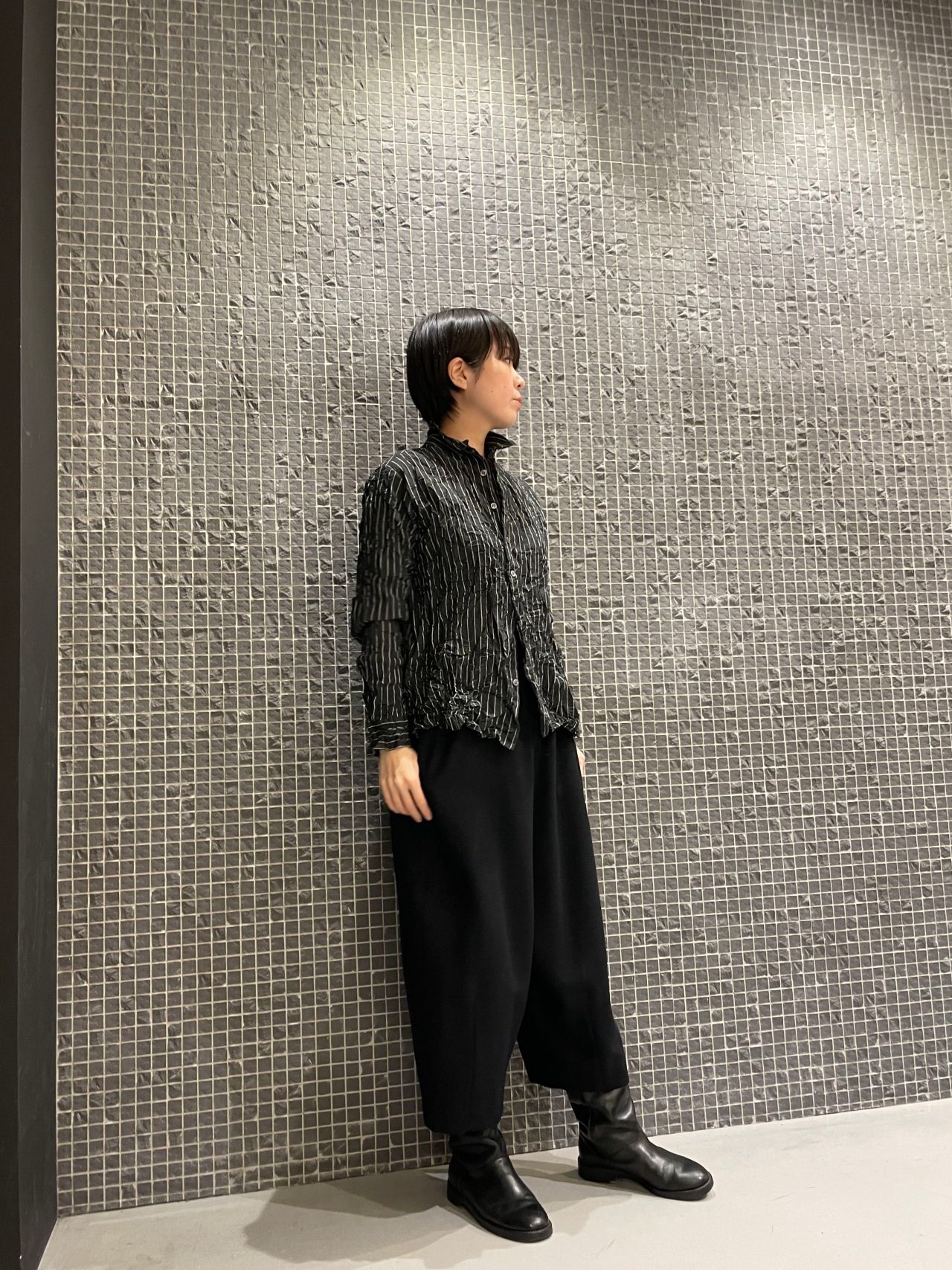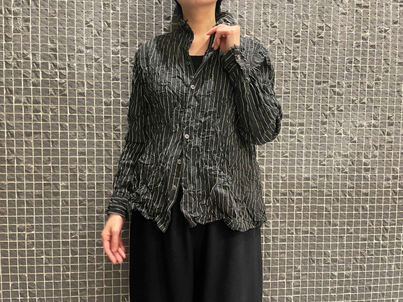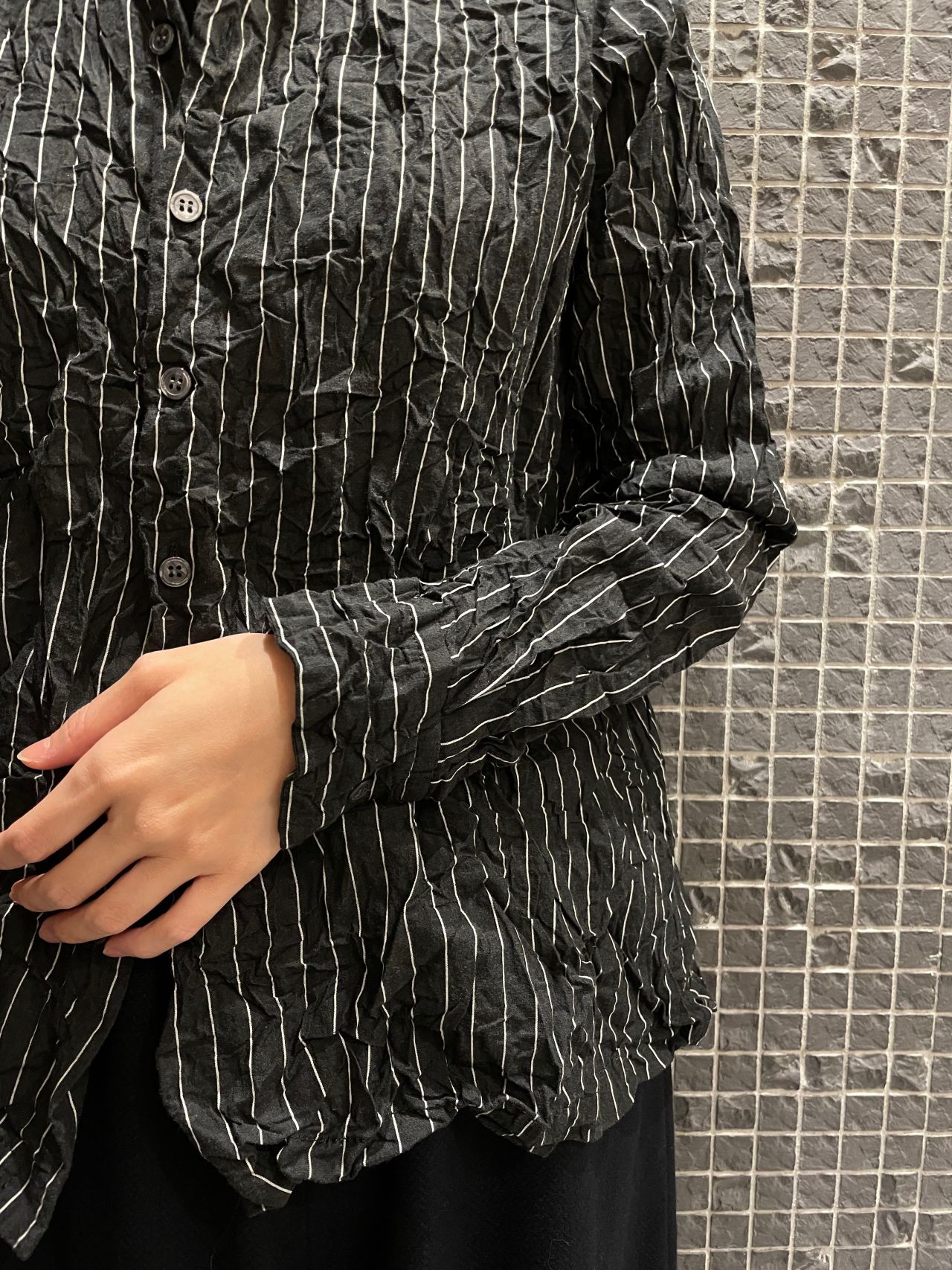 手で絞ったようなシワ加工が施されたメンズライクなシャツ。