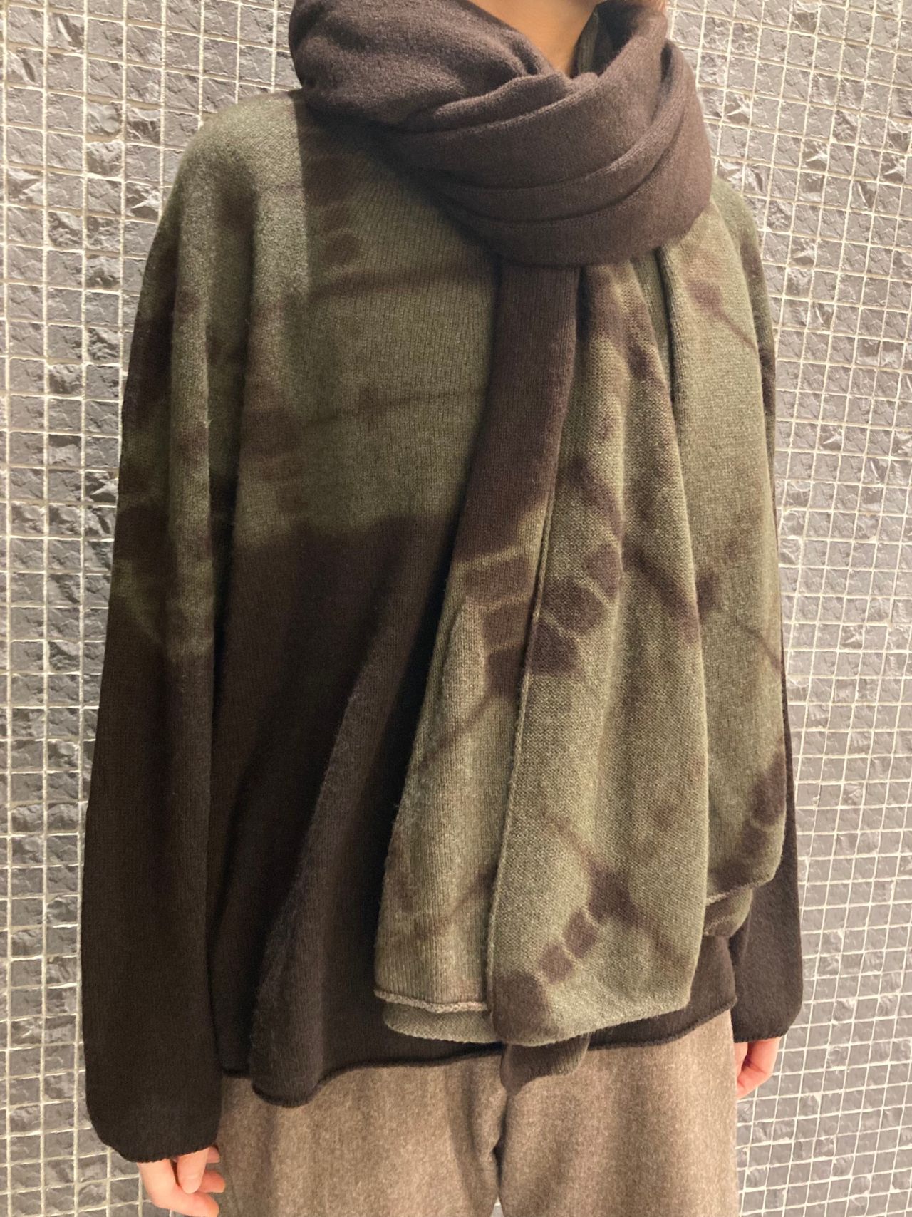 職人の手作業によって絞り染めされた特別なセーターとマフラーは、大人のエレガンスを感じるアイテム。