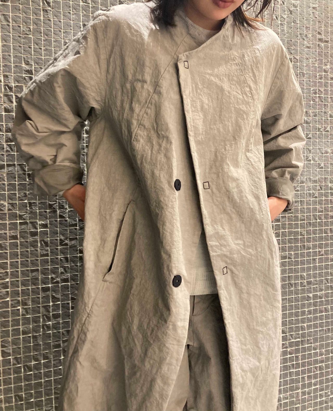 防水性に優れた張り感のある綿麻ウェザー素材のコート。