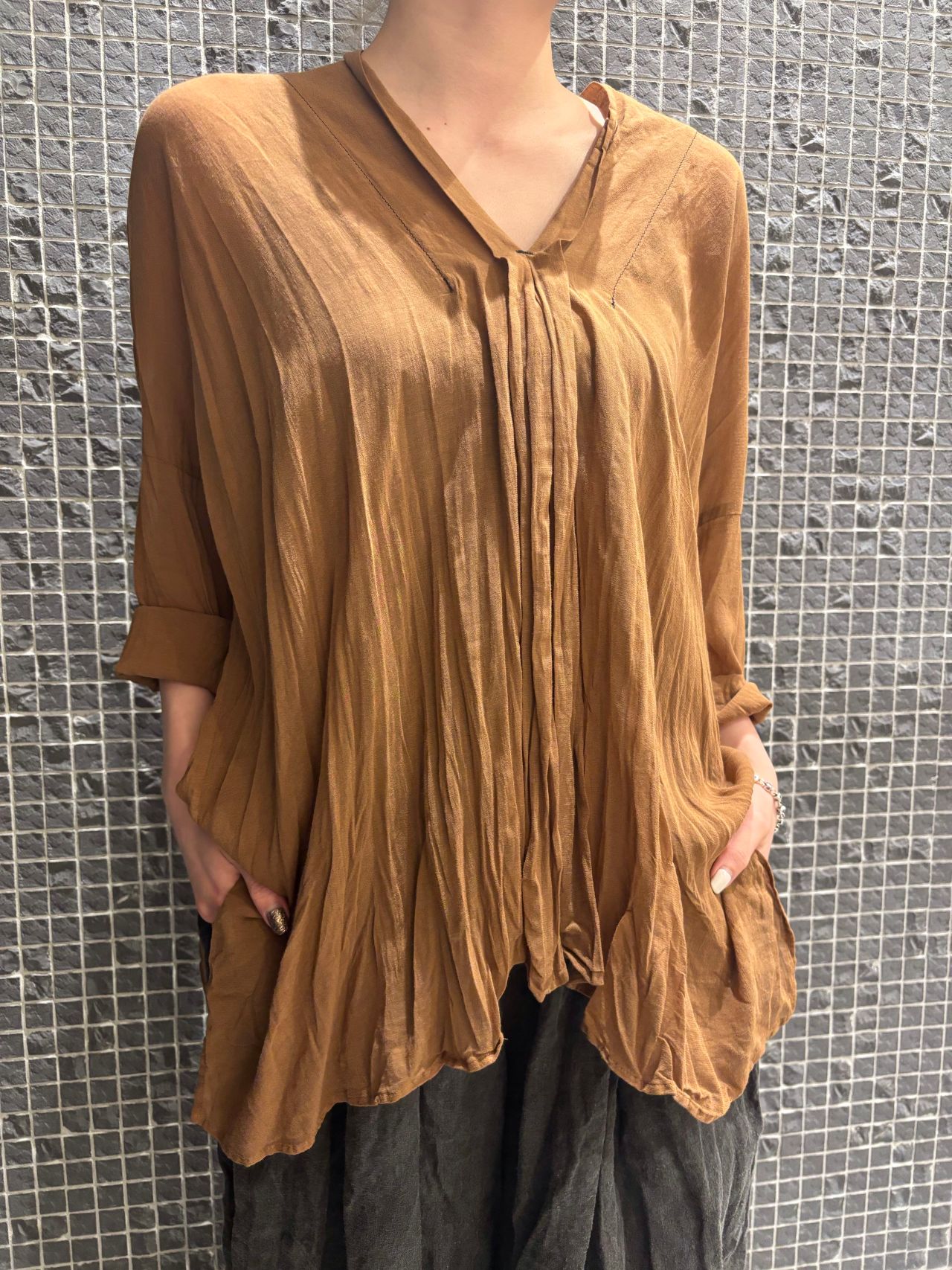 blouse no.6483 col.brick,gray,charcoal size.36 ¥31,900