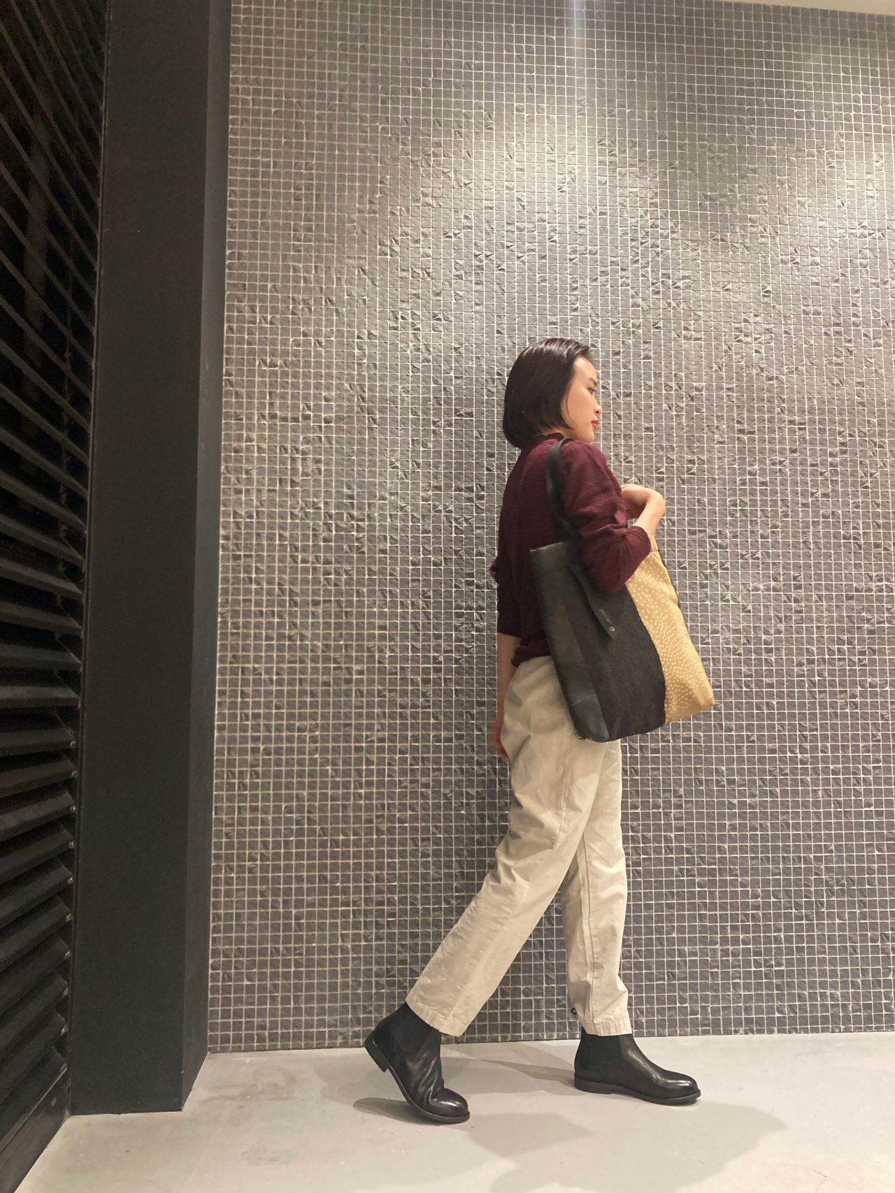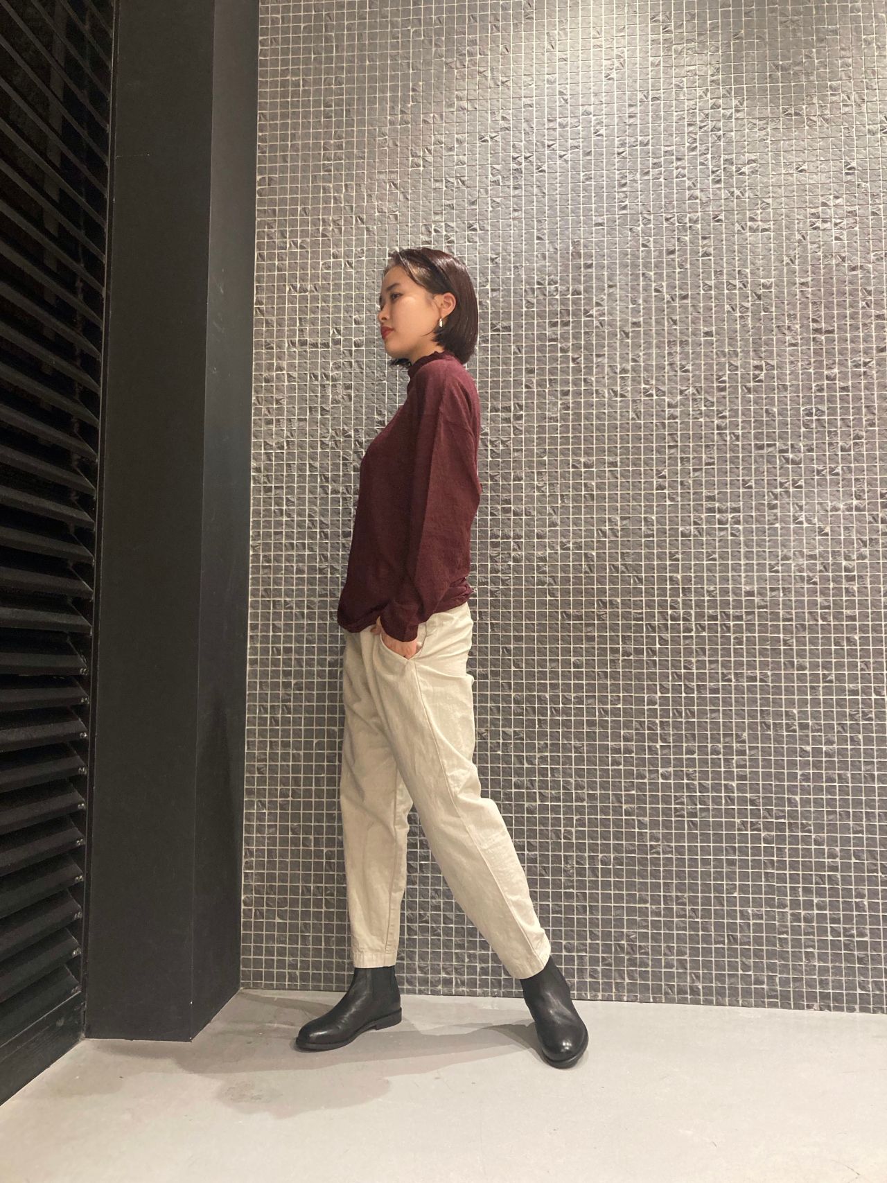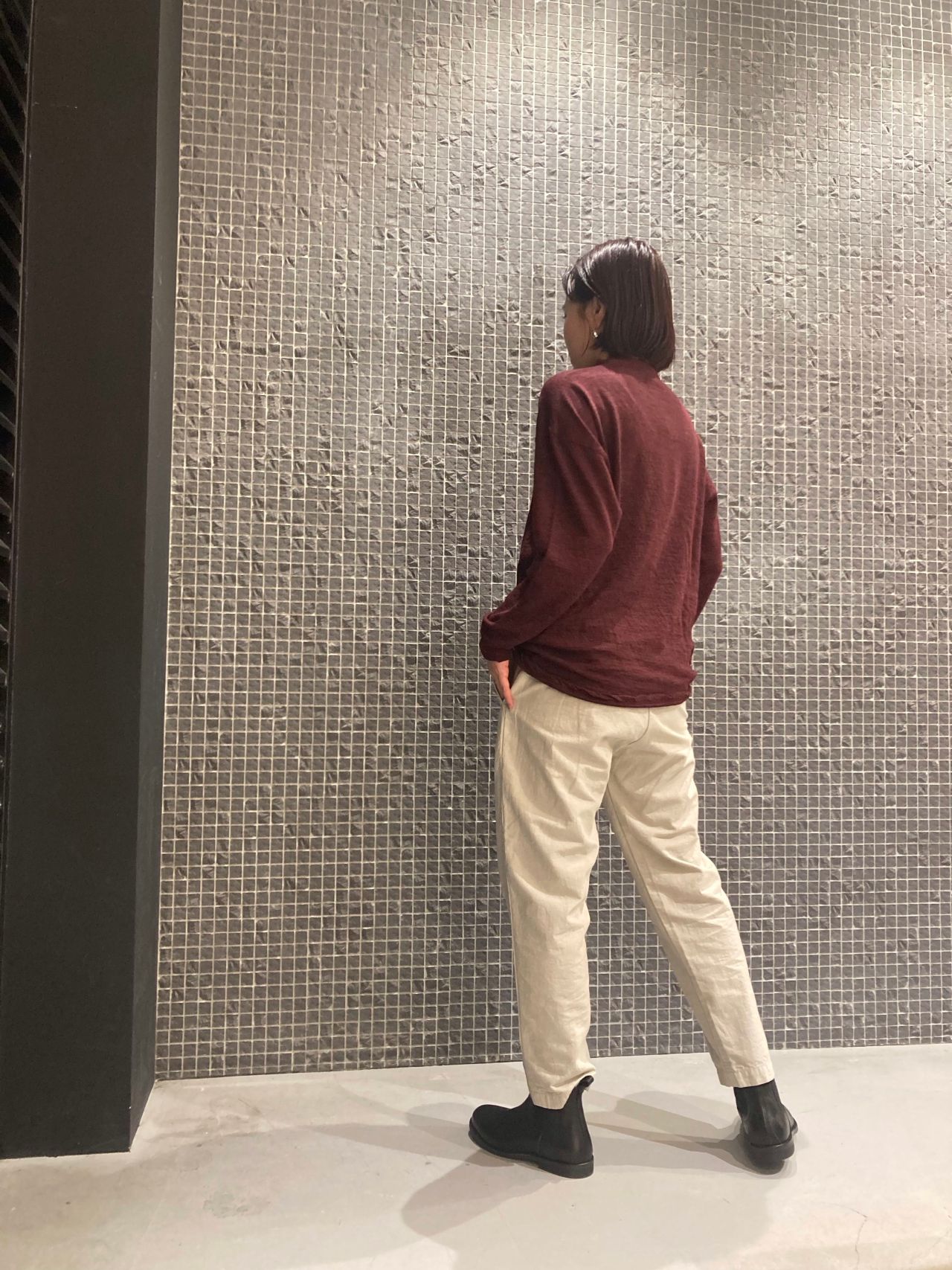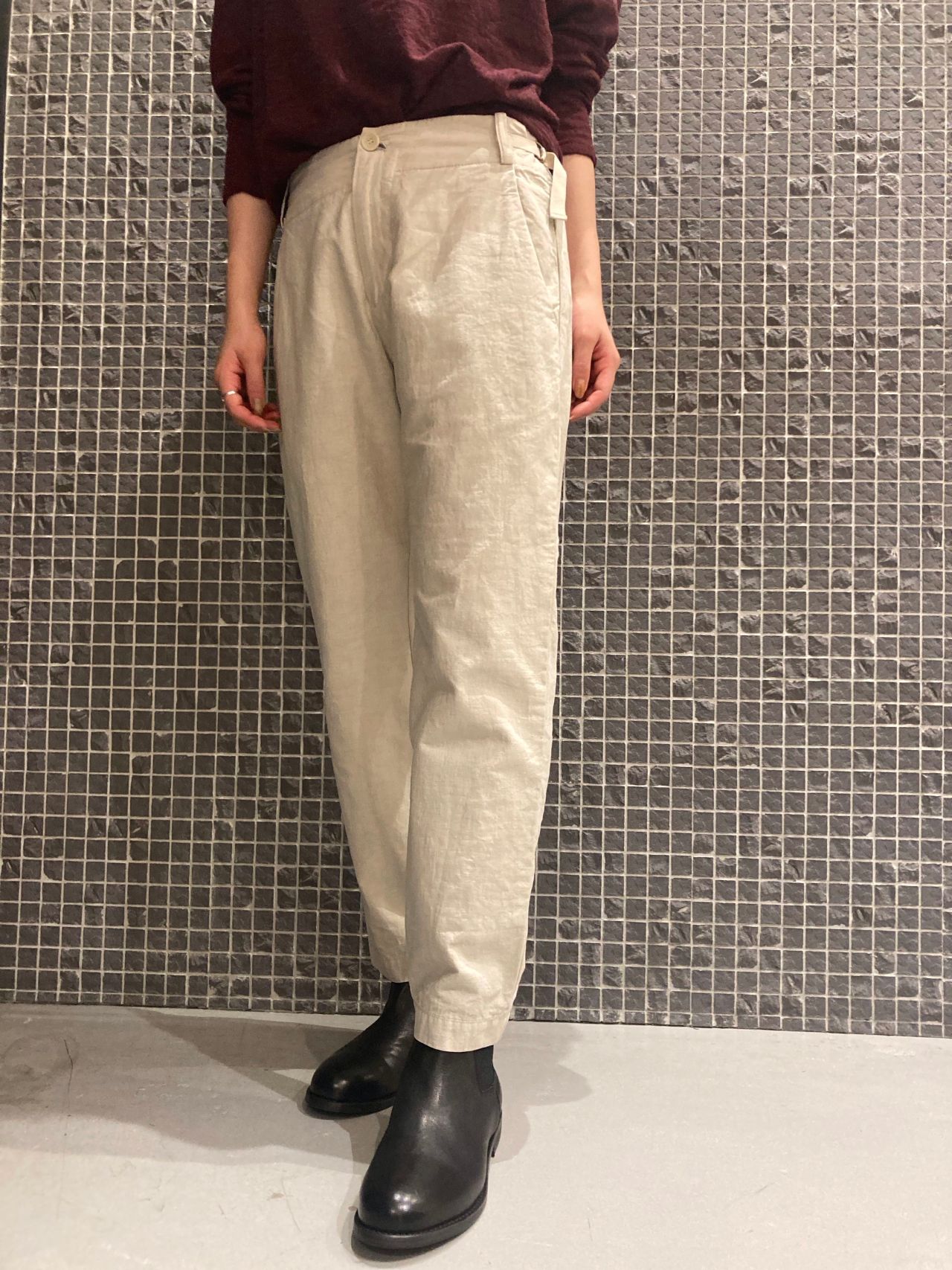 合わせたのはパドカレ定番のパンツ。スッキリなシルエットで薄い綿麻素材。