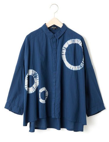 一枚でさらっと着れる、凛とした印象のブラウス。絞り染めされた大きな円のモチーフが見事に映えて、うっとりしますね。デニムと合わせてベーシックに着こなせます。