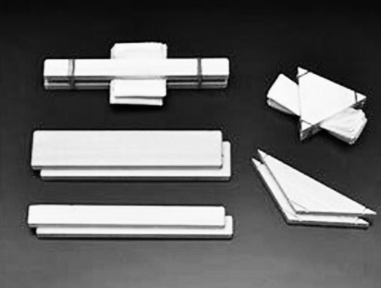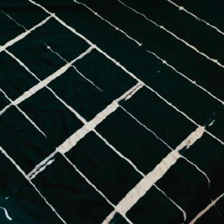 三角や四角など折りたたんだ布を、板ではさんで幾何学的な模様を作る。折り方や木のあて方により、色々な染めが楽しめる。