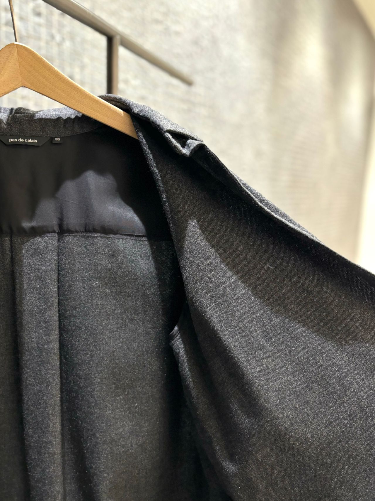 両脇にスラッシュポケット付きで、羽織としてもエレガントな存在感を放つ