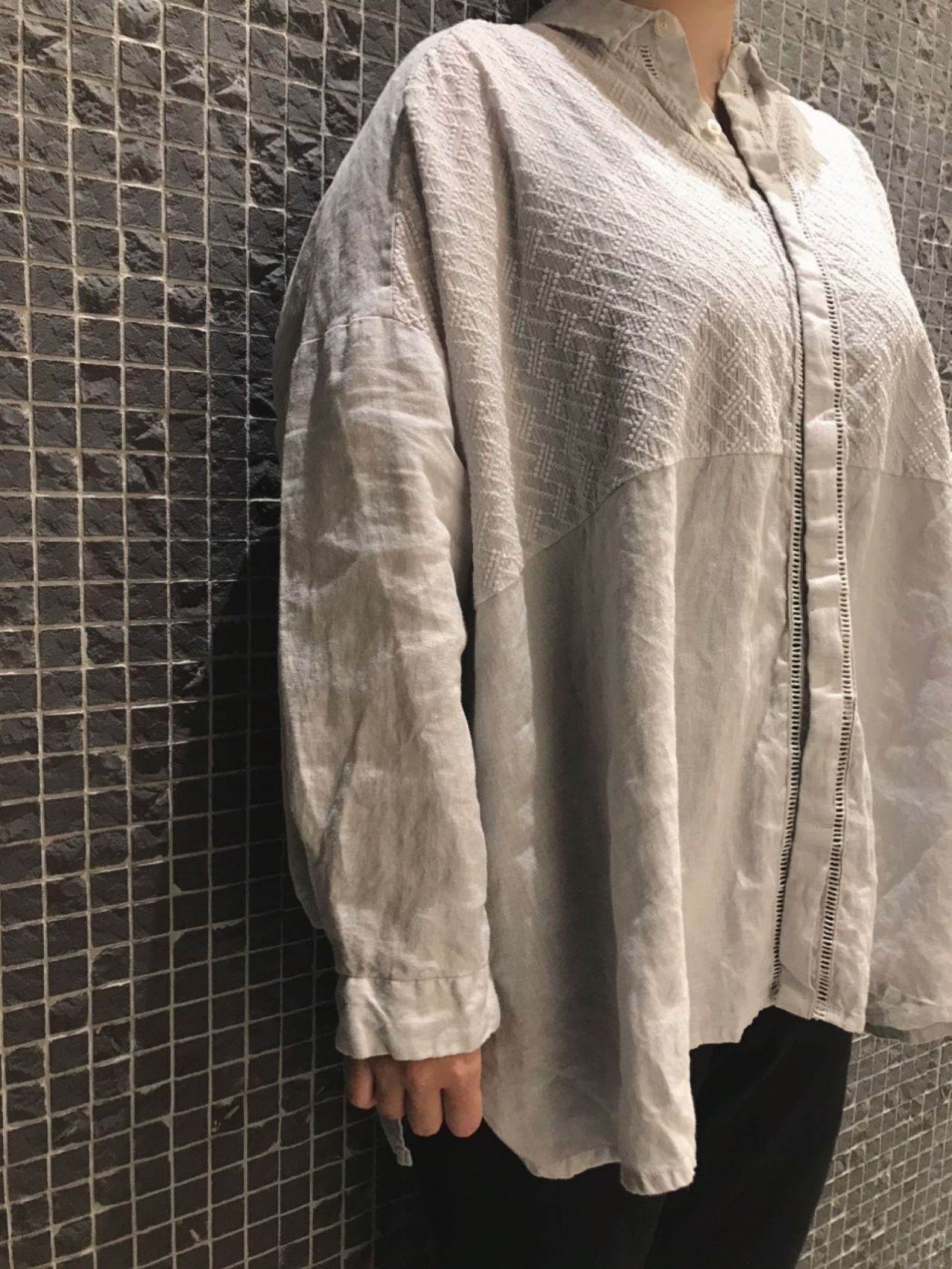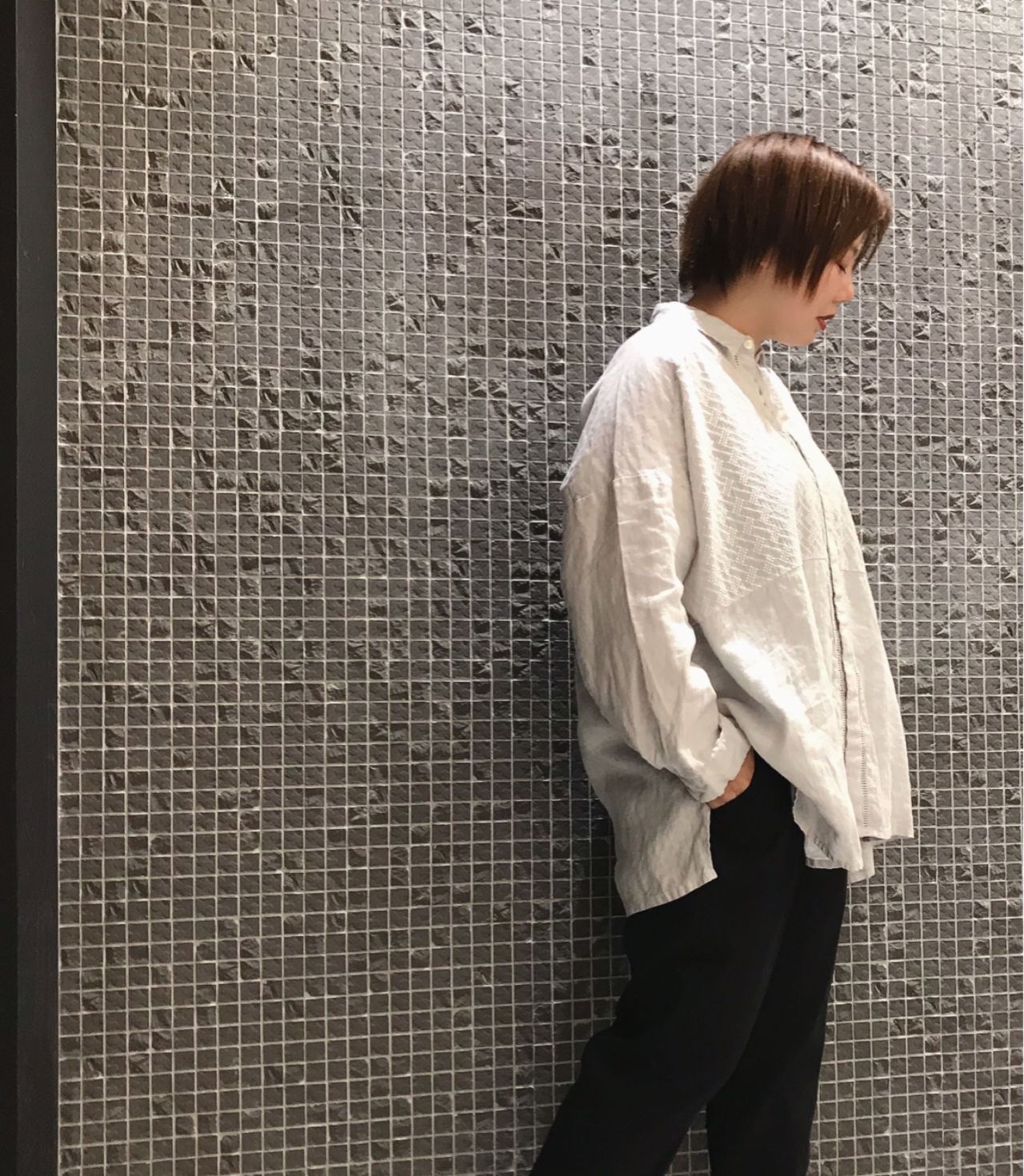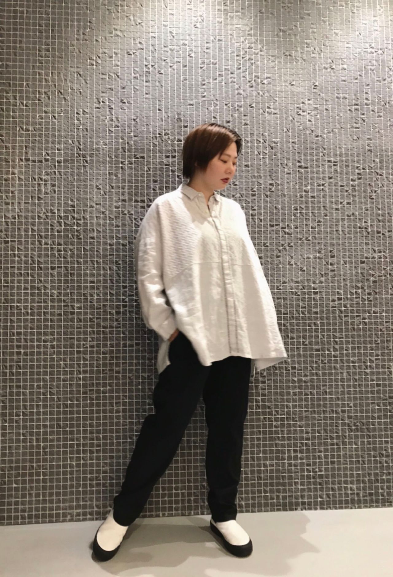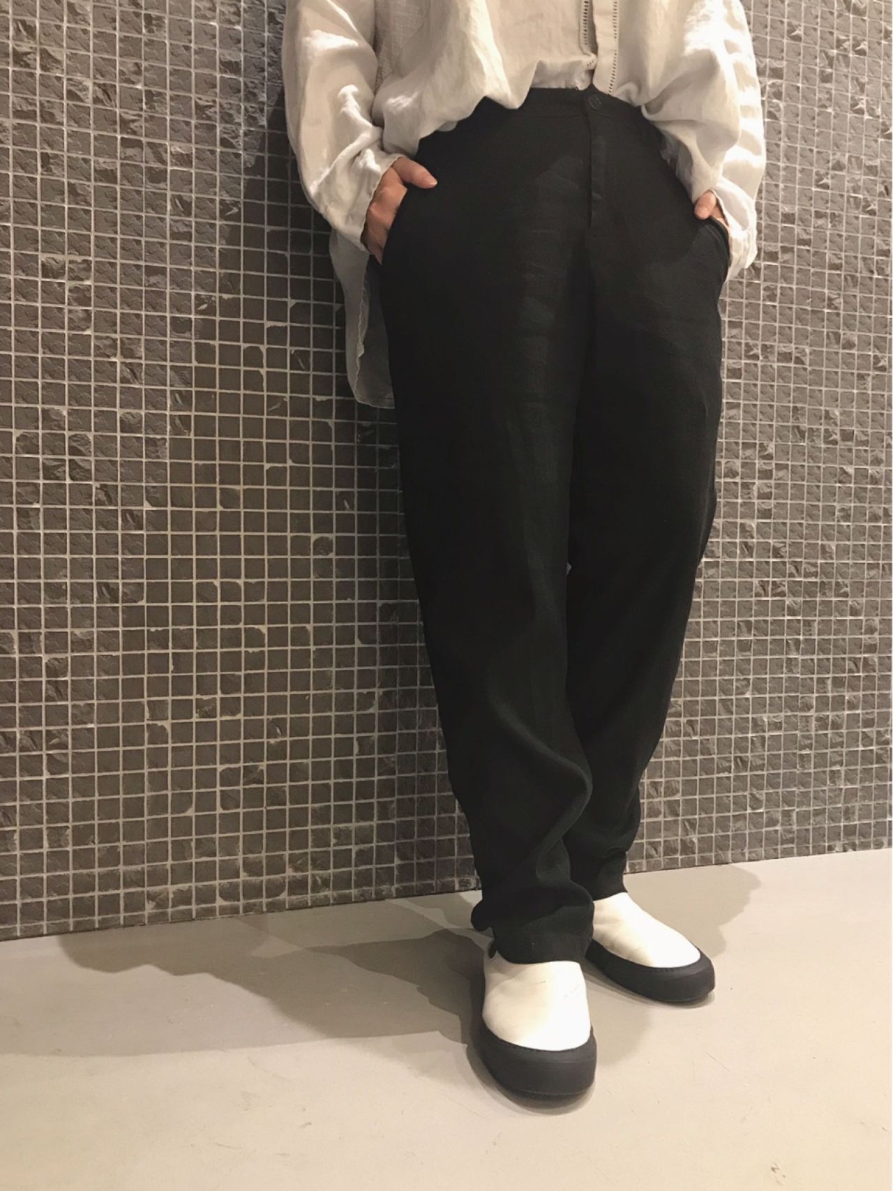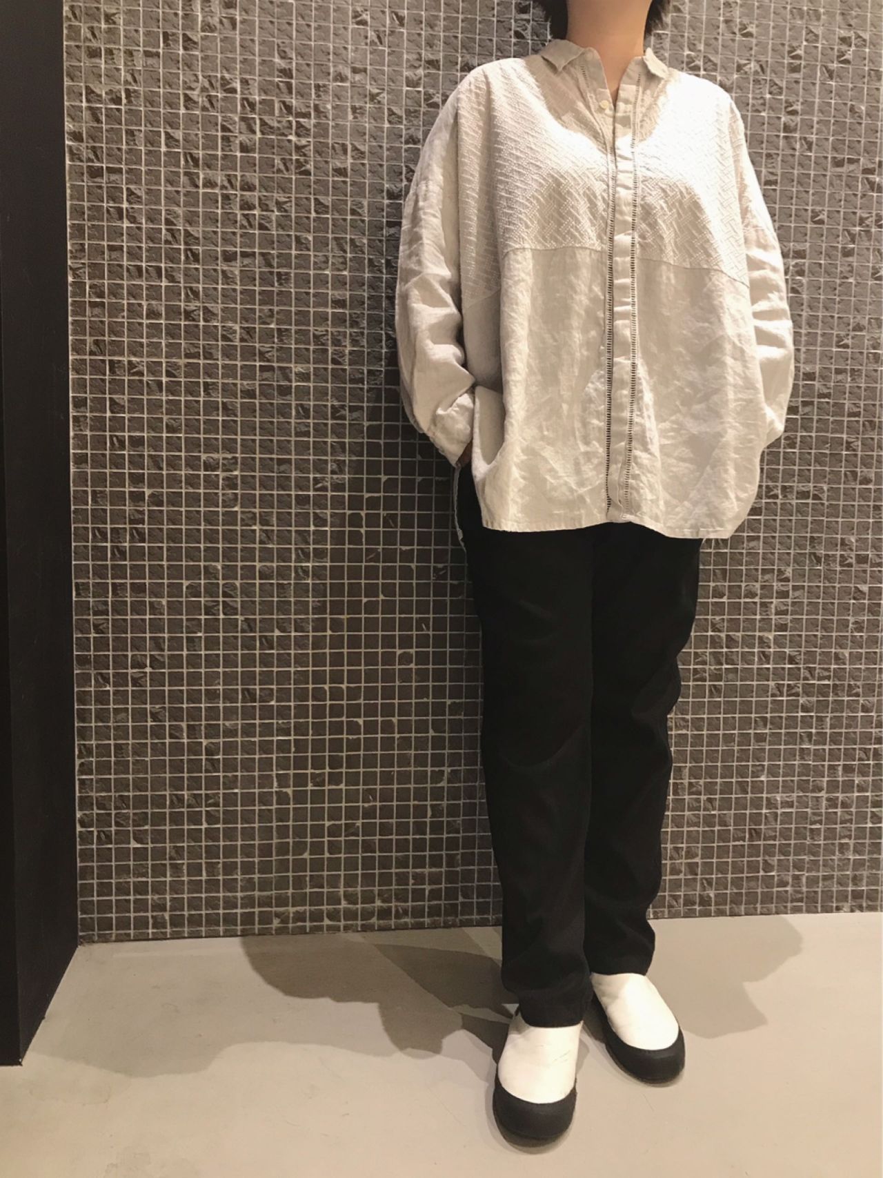 今回は黒を合わせてしめましたが、同じトーンのボトムで合わせてクリーンな印象で着るのも素敵だと思います。