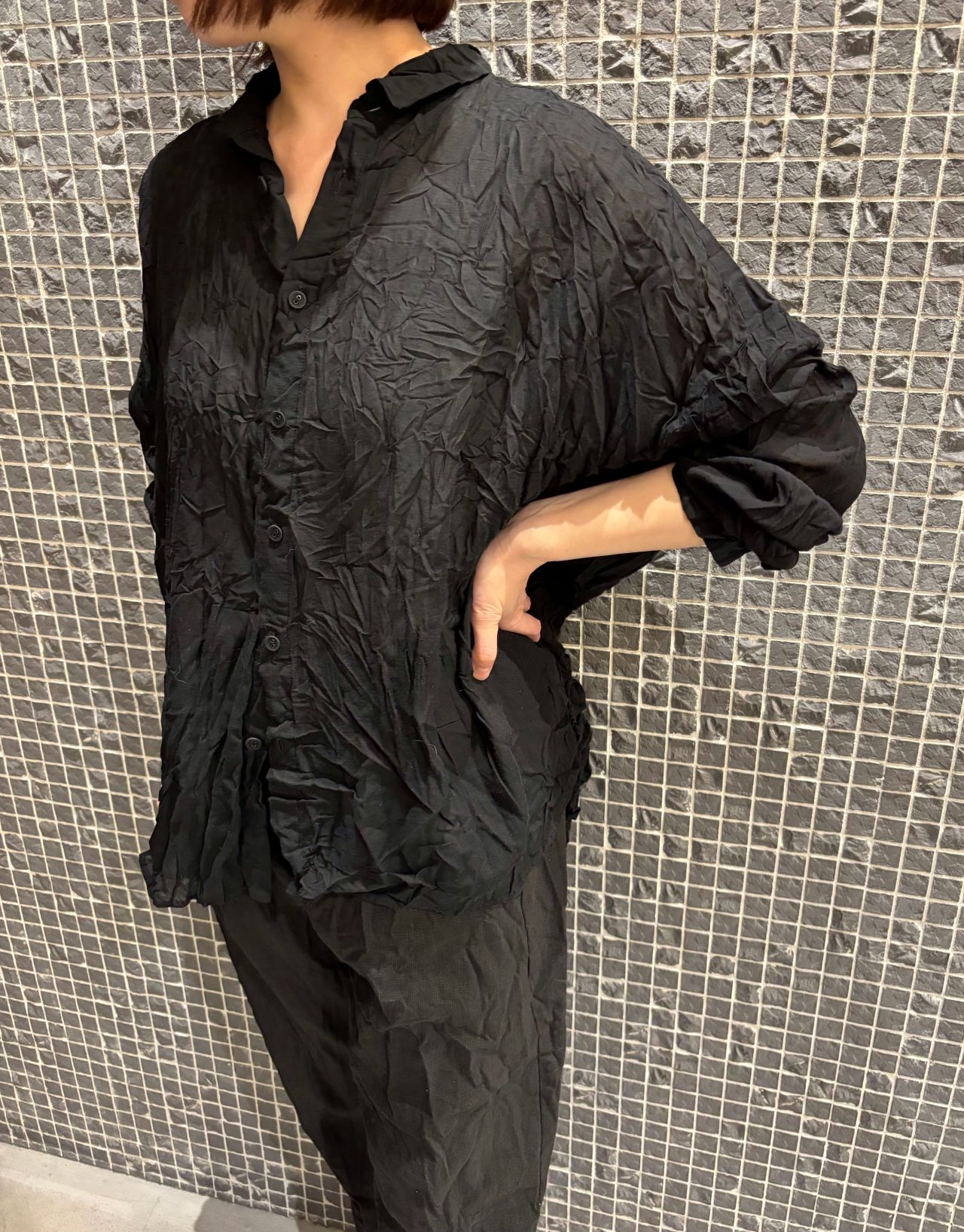 blouse no.6487 col.ivory,indigo,black size.36 ¥35,200