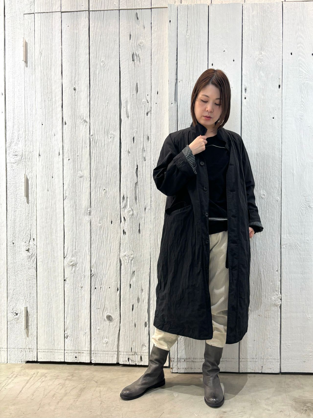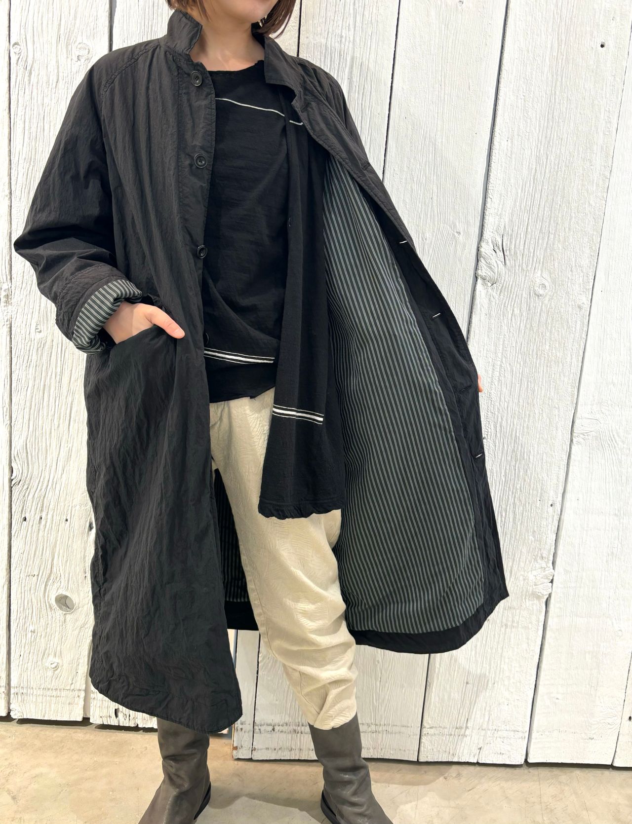 coat no.9313 col.black,beige size.34,36 ¥75,900