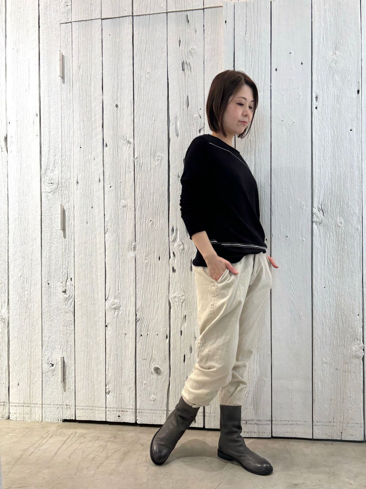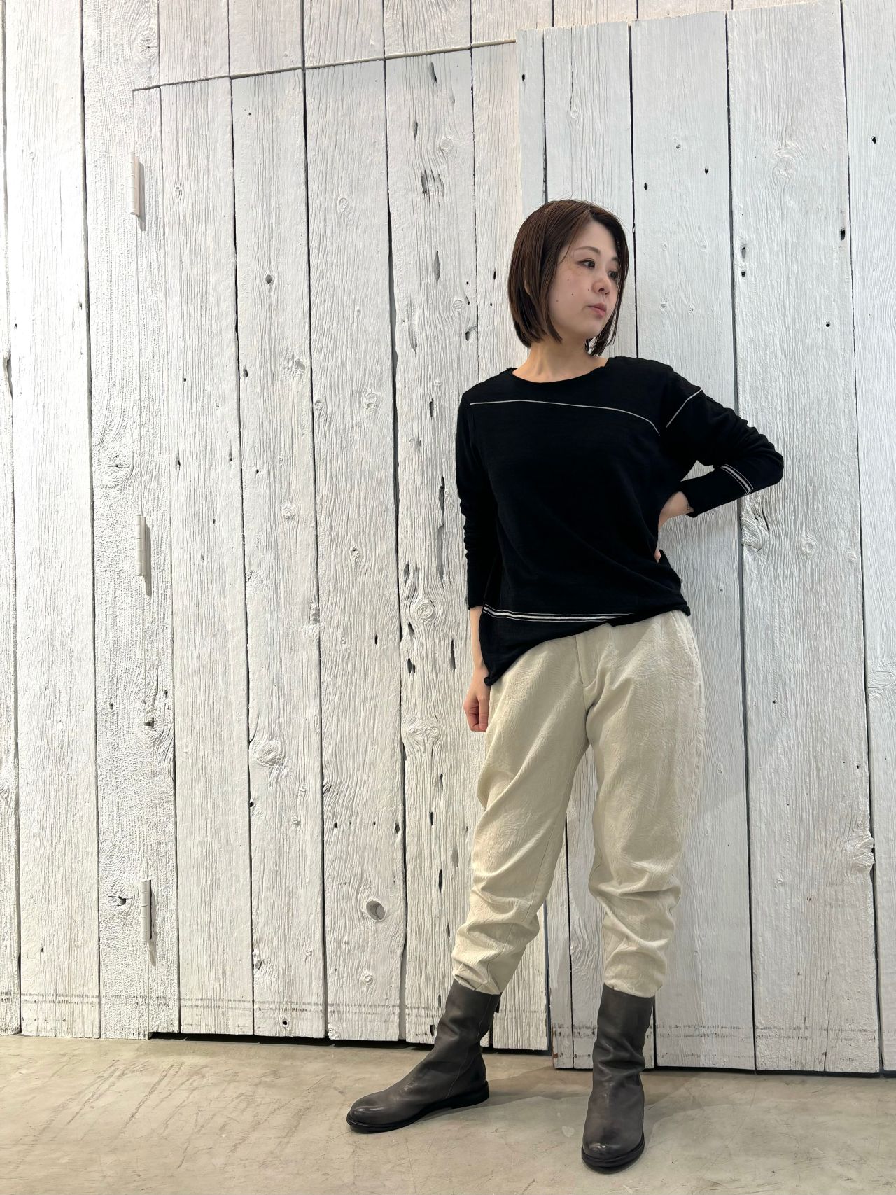 pants no.8478 col.ivory,black size.36 ¥33,000 (10月中旬入荷)