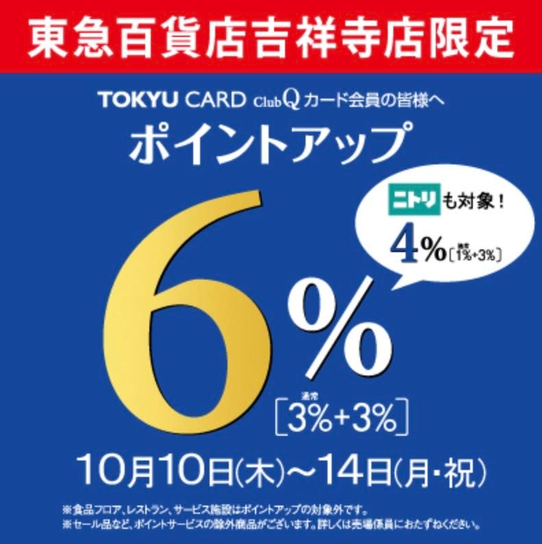 【予告】東急カード会員様ALL10%OFF & ポイントアップ