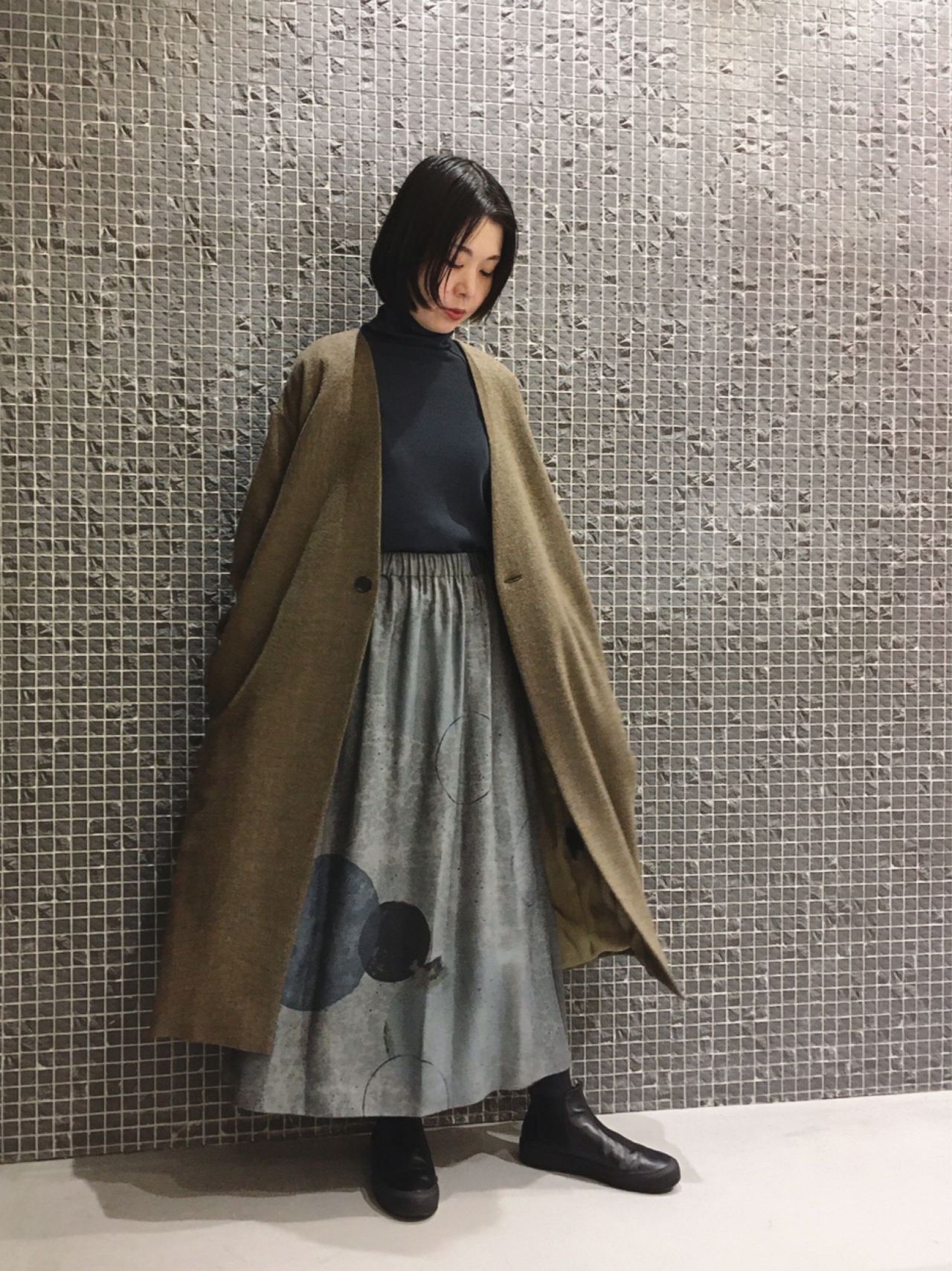 適度なツヤと落ち感で、冬の重めなスタイリングに軽さが出ます。