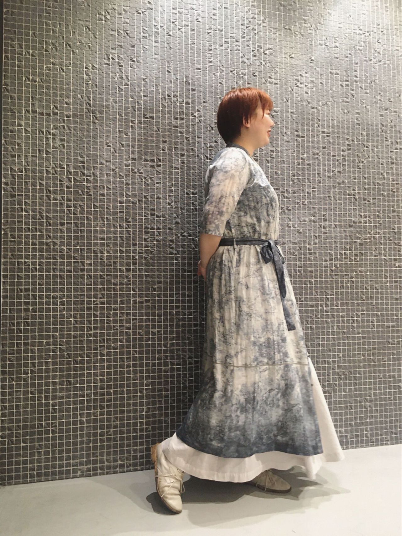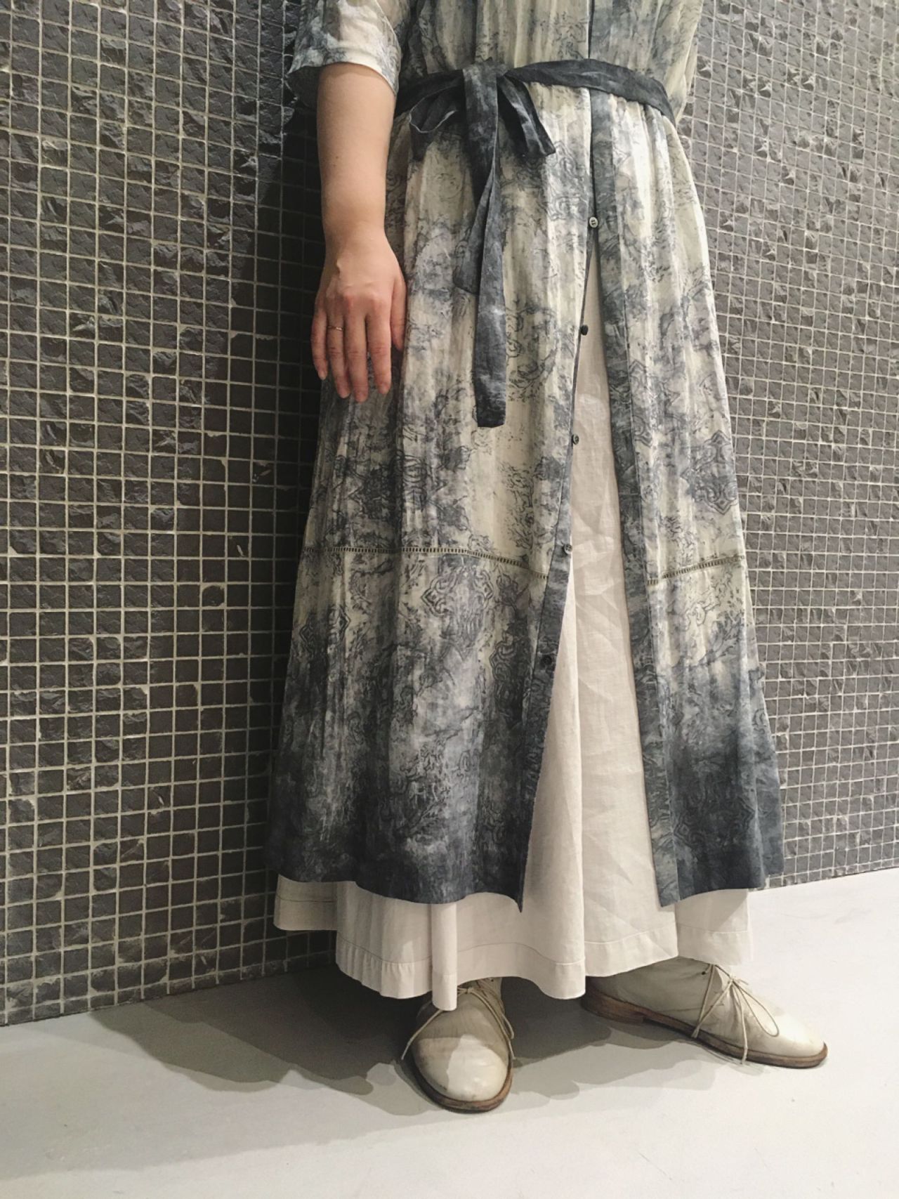 綿麻ラミーボイルワンピースno.4045 col.グレー(着用)/アイボリー ¥47,300