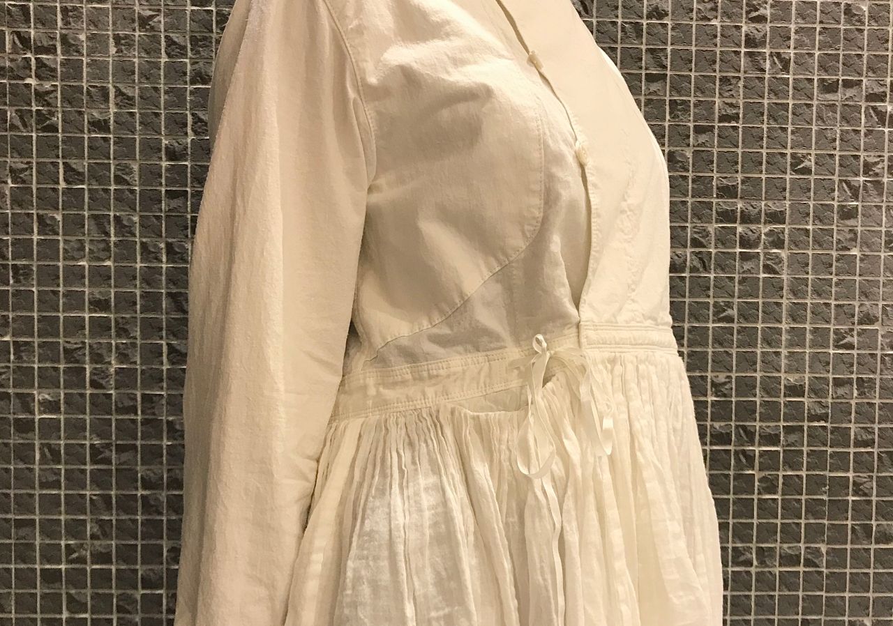 好きなディテールはちっちゃなポケットと、ウエストを絞っている部分に付いている繊細な綿テープリボンです。